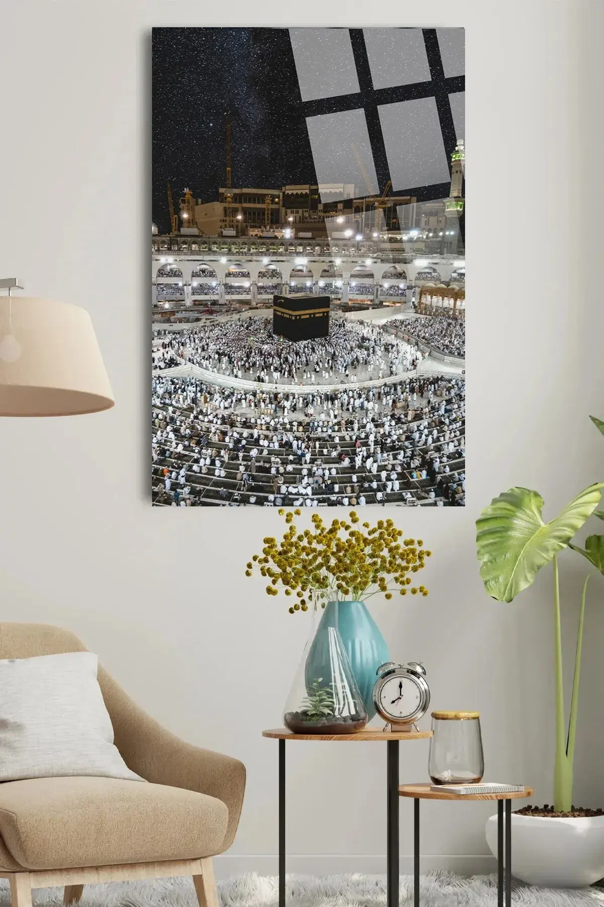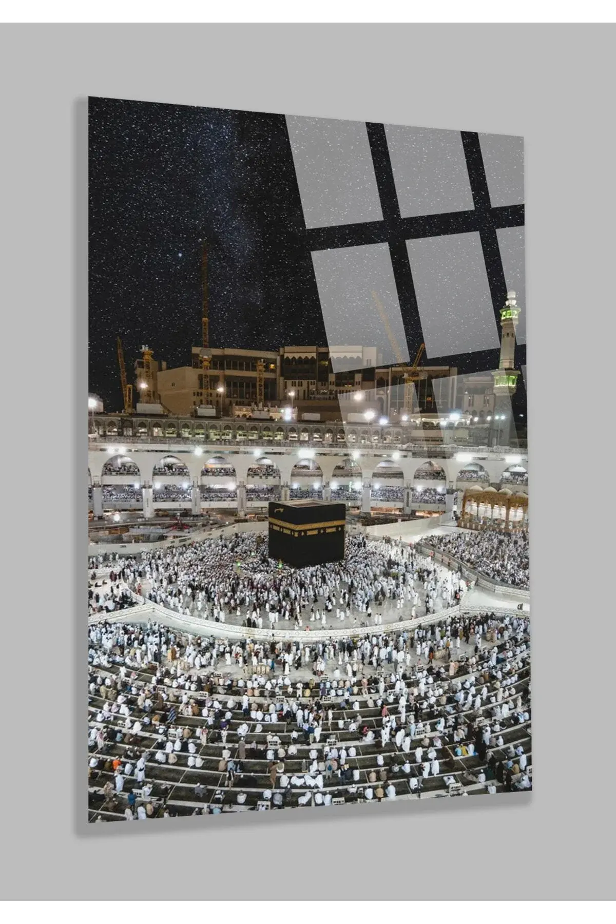 HARİKA GECE MEKKE MEDİNE UMRE DİNİ İSLAMİ KIRILMAZ LÜKS CAM TABLO EV, İŞ YERİ, OFİS HEDİYESİ