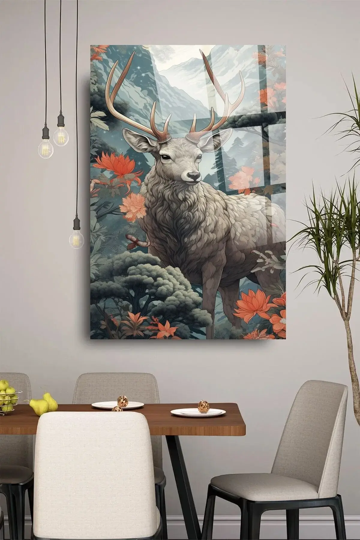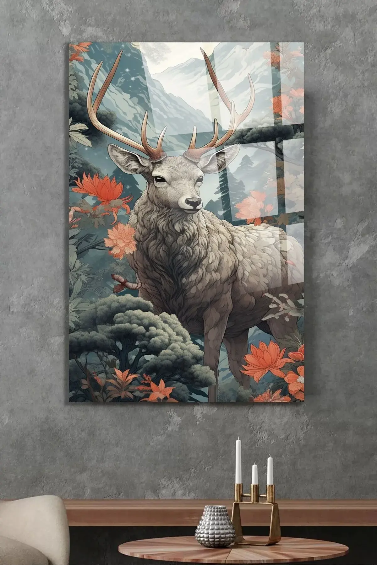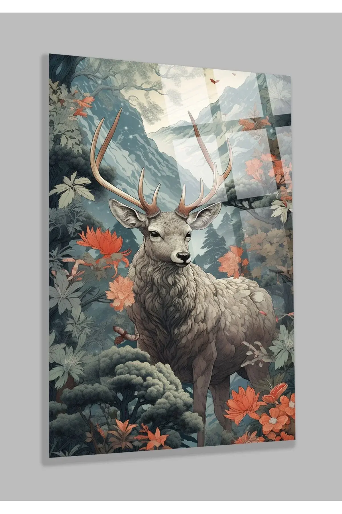 Harika Geyik Görseli Kırılmaz Cam Tablo, Ev Ve Ofis Hediyesi Yüksek Çözünürlüklü 4mm Cam Tablo