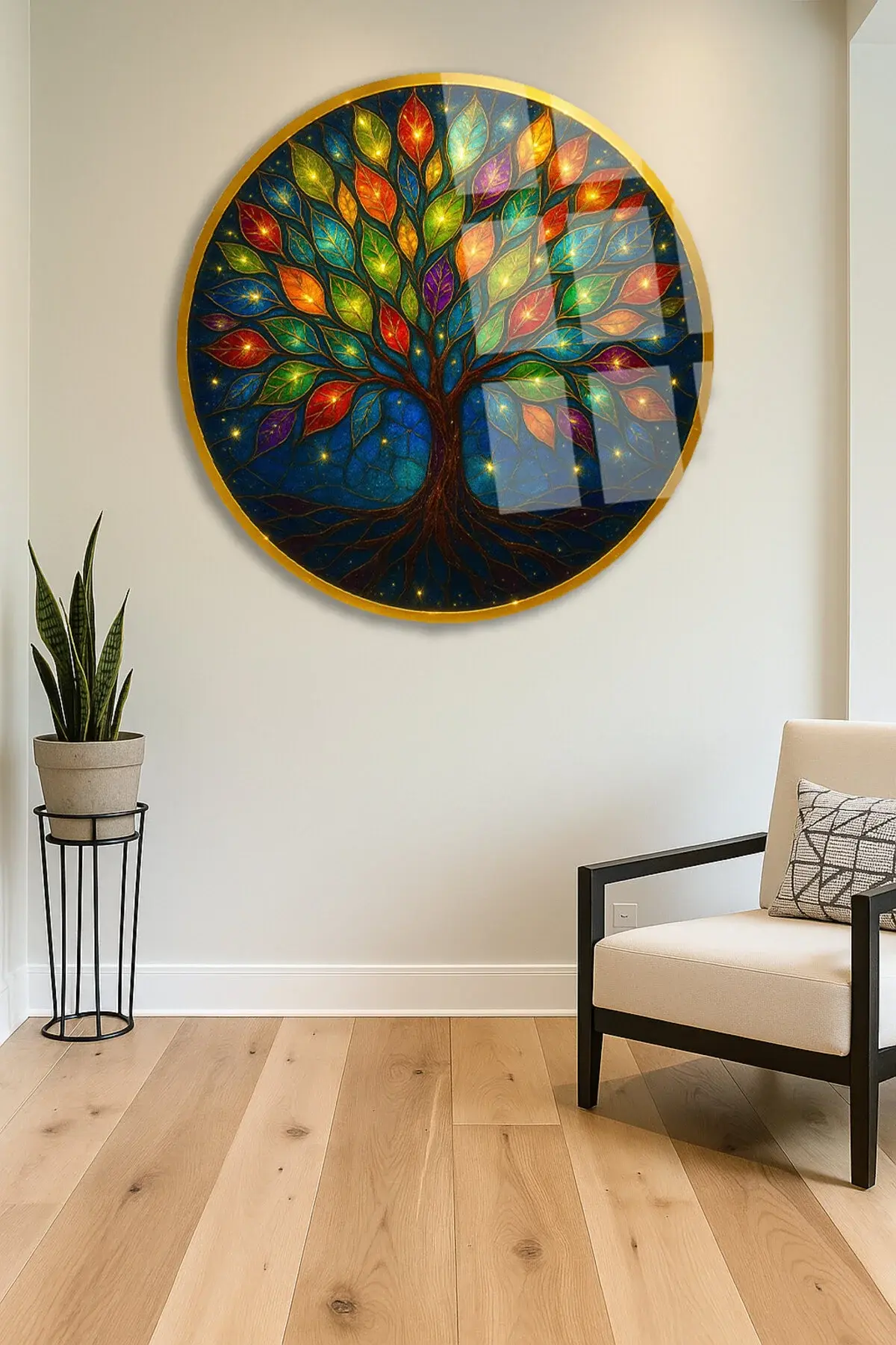 HARİKA IŞILTILI HAYAT AĞACI TABLOSU VİTRAY TEMALI LÜKS KIRILMAZ CAM TABLO HEDİYE TABLO MODERN TABLO Lacivert