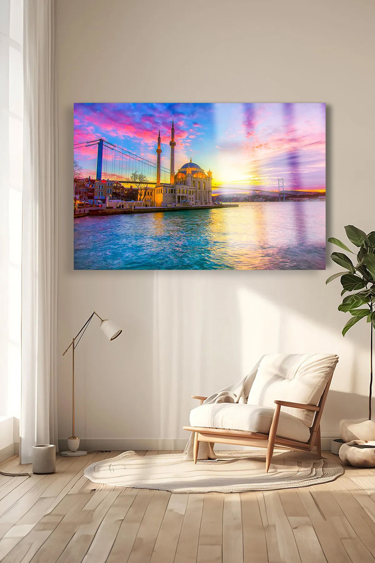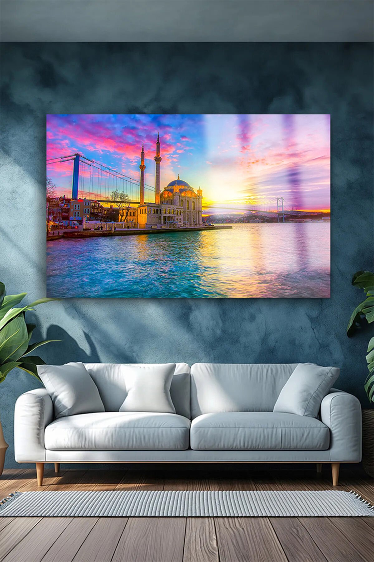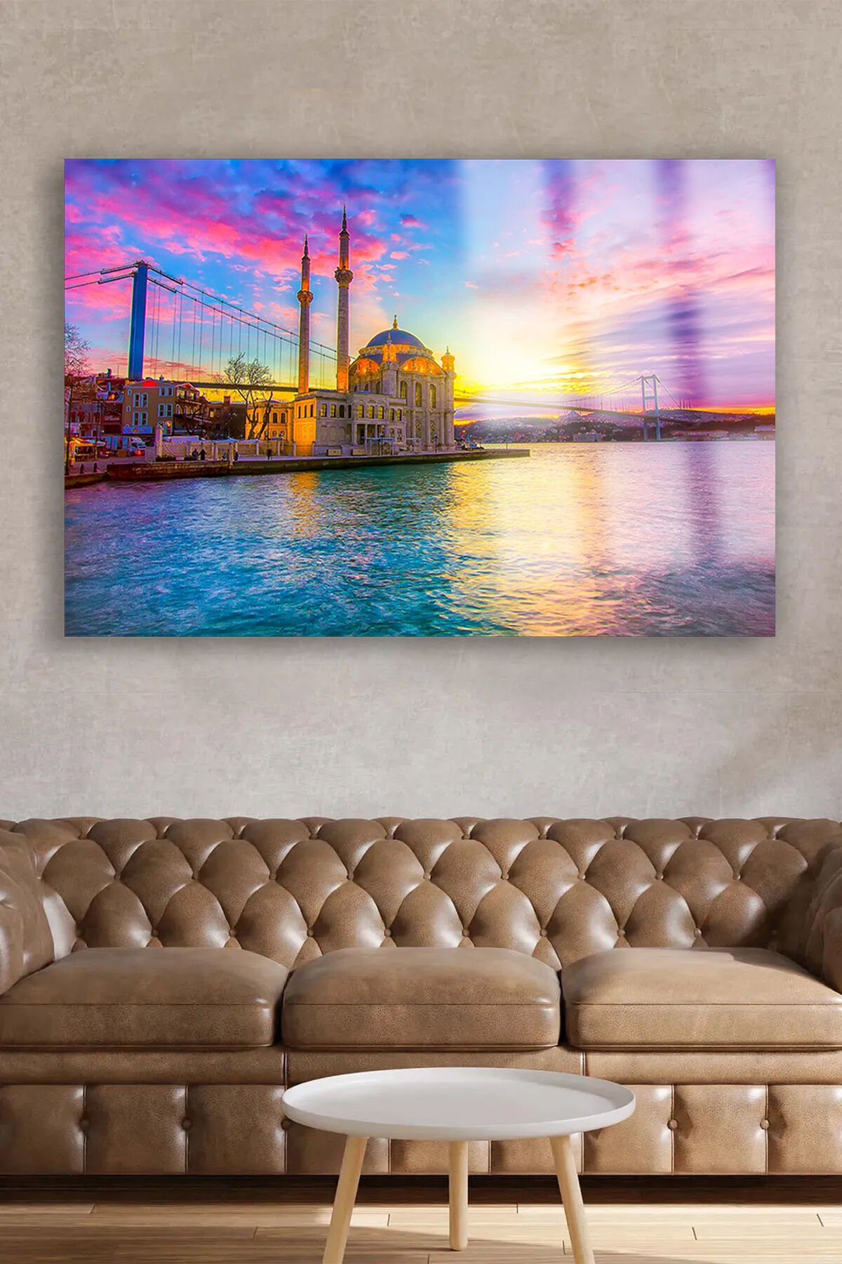 HARİKA İSTANBUL MANZARASI YATAY KIRILMAZ LÜKS CAM TABLO ULTRA YÜKSEK ÇÖZÜNÜRLÜKLÜ EV HEDİYESİ Turuncu