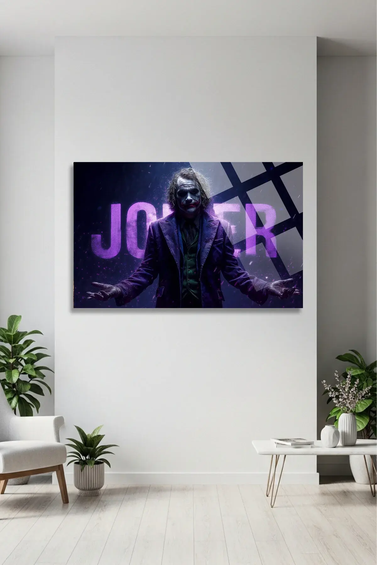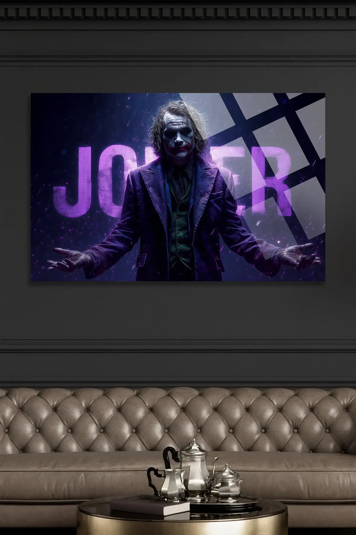 HARİKA JOKER TASARIMI CAM TABLO ULTRA CANLI RENKLER KIRILMAZ CAM TABLO JOKER TABLOSU Mor