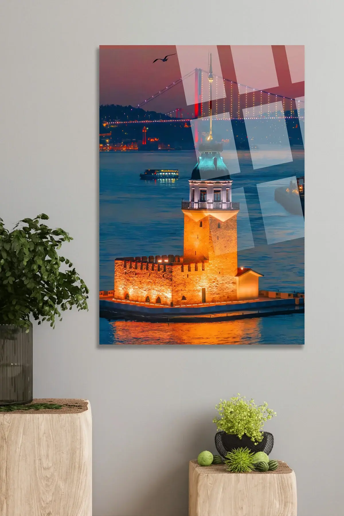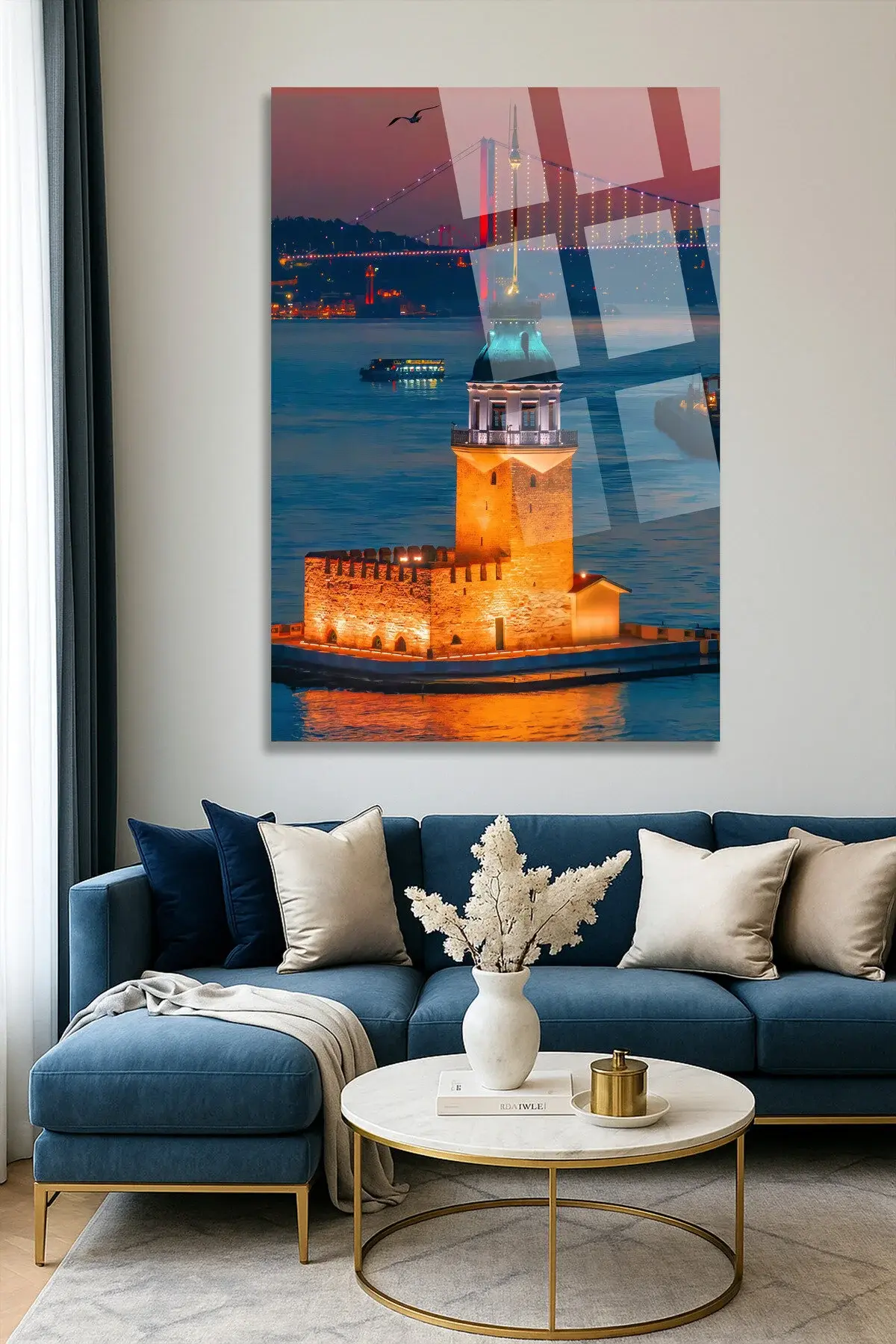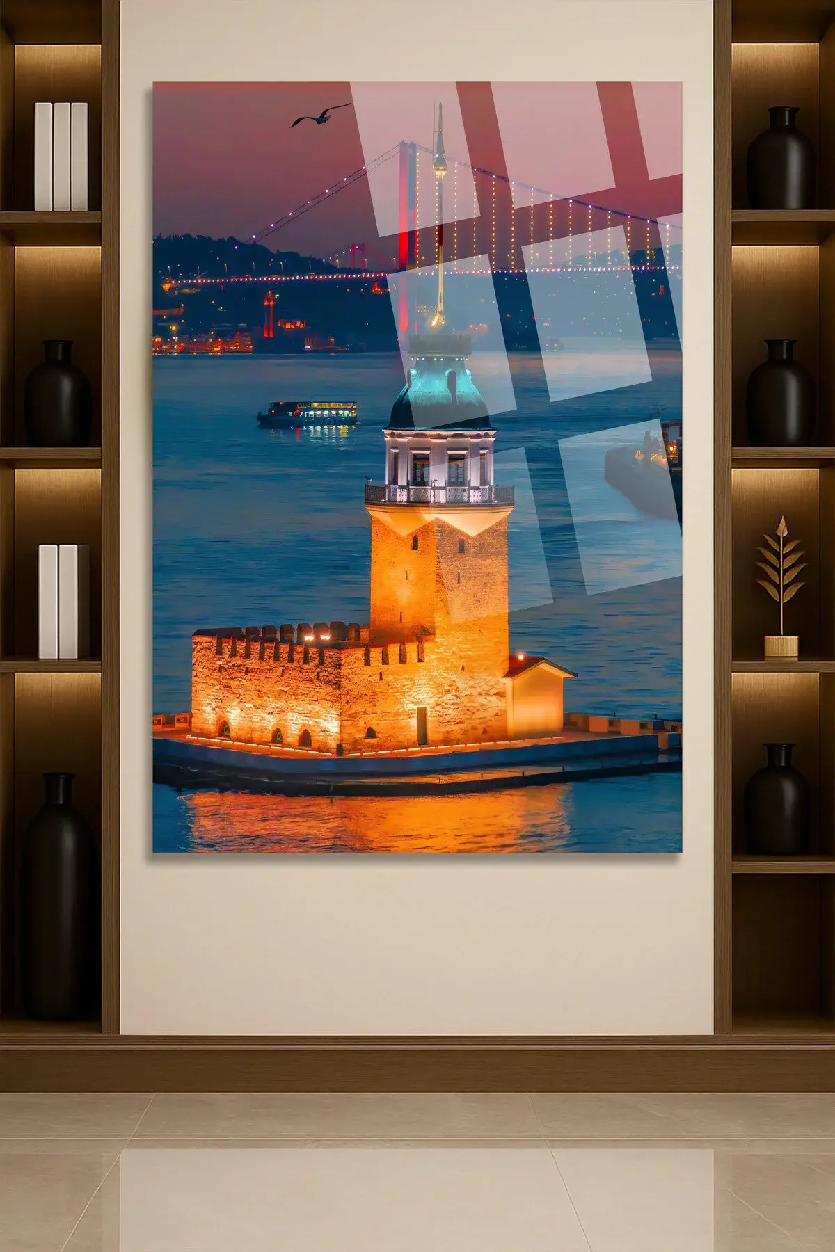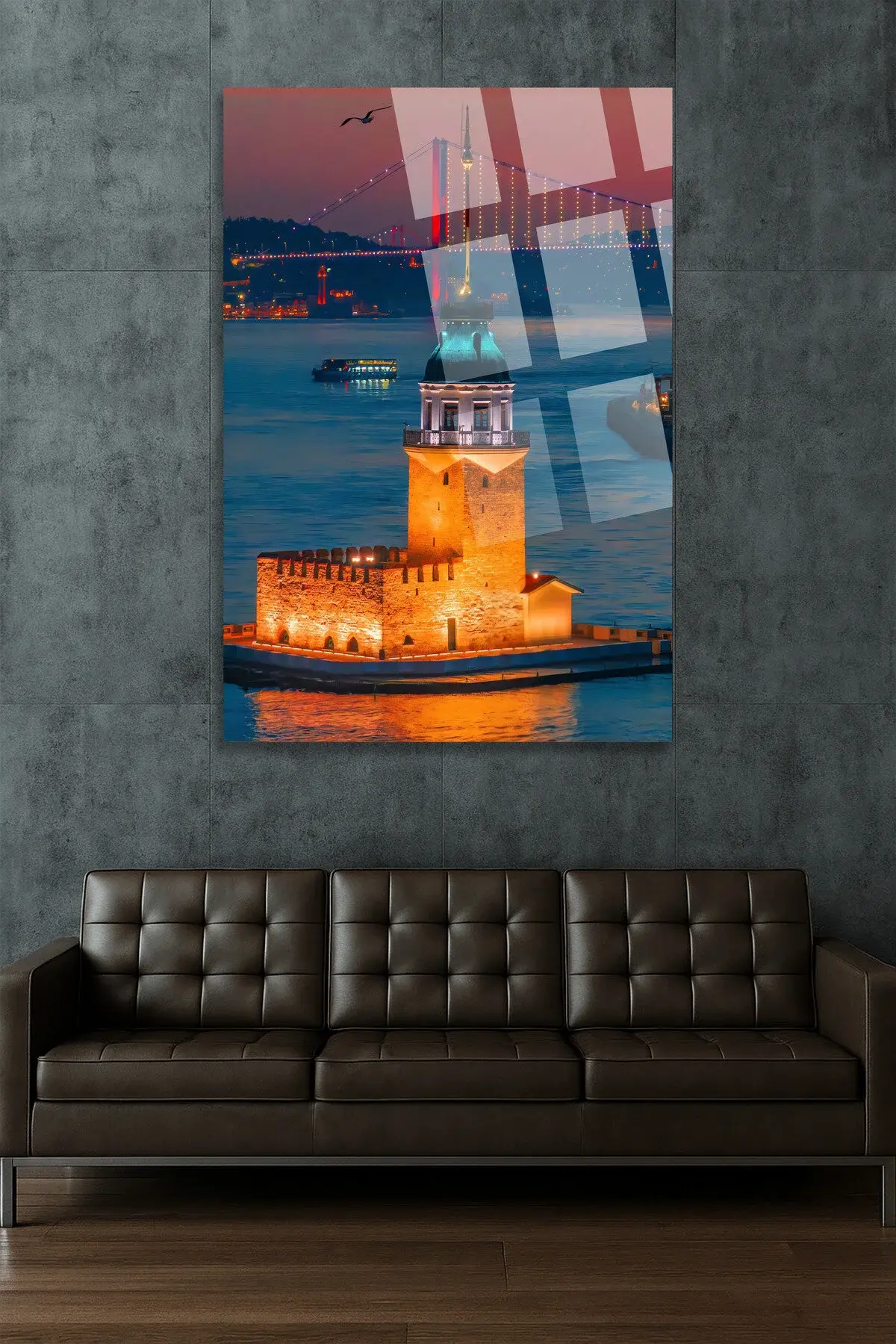 HARİKA KIZ KULESİ MANZARASI CAM TABLO İSTANBUL MANZARASI CAM TABLO ULTRA CANLI RENKLER Lacivert