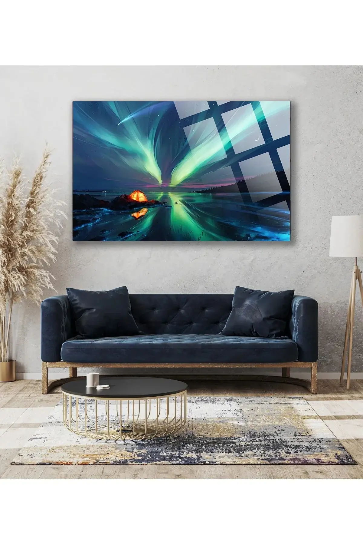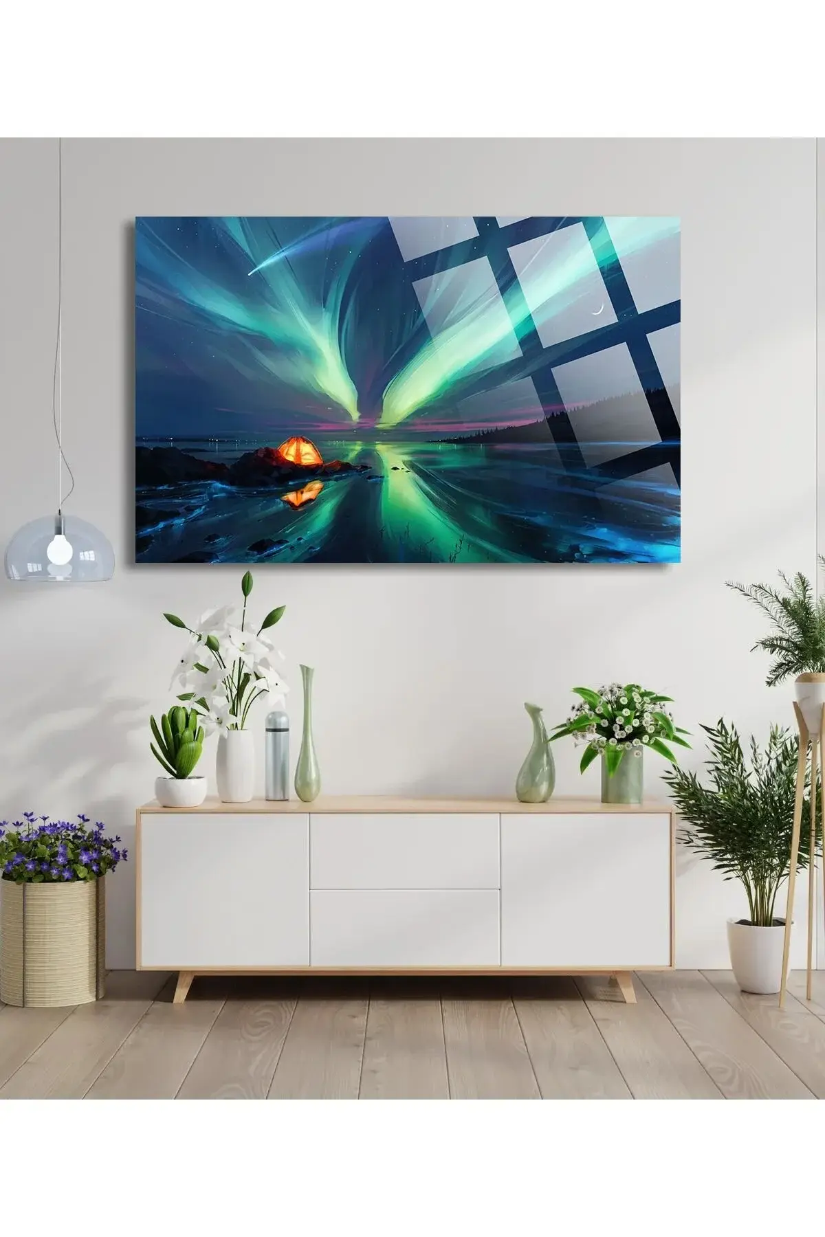 Harika Kuzey Işıkları Manzarası 4mm Lüks Kırılmaz Temperli Yüksek Çözünürlüklü Cam Tablo