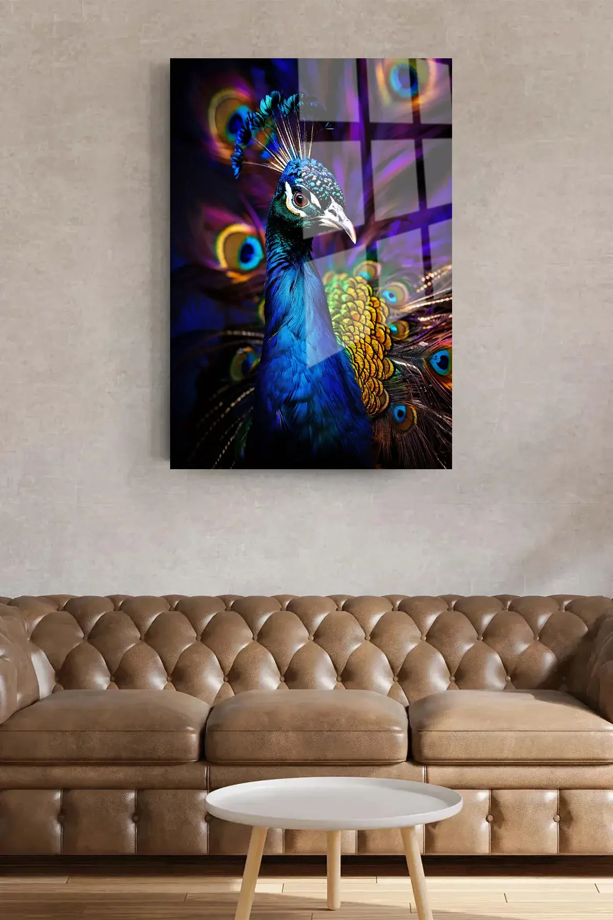 HARİKA RENKLERLE TAVUS KUŞU CAM TABLO EV HEDİYESİ KIRILMAZ LÜKS MODERN CAM TABLO Lacivert