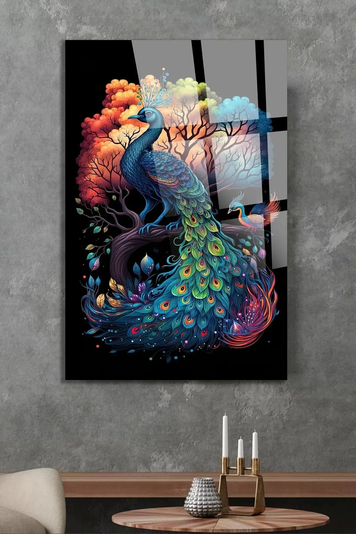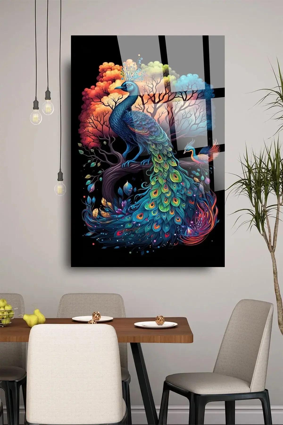 Harika Tavus Kuşu Görseli Kırılmaz Cam Tablo, Ev Ve Ofis Hediyesi Yüksek Çözünürlüklü 4mm Cam Tablo