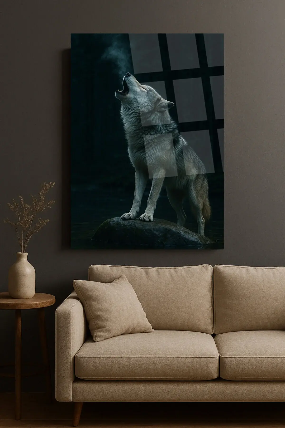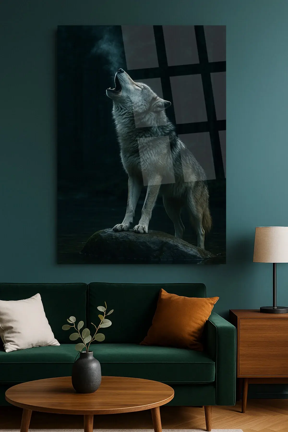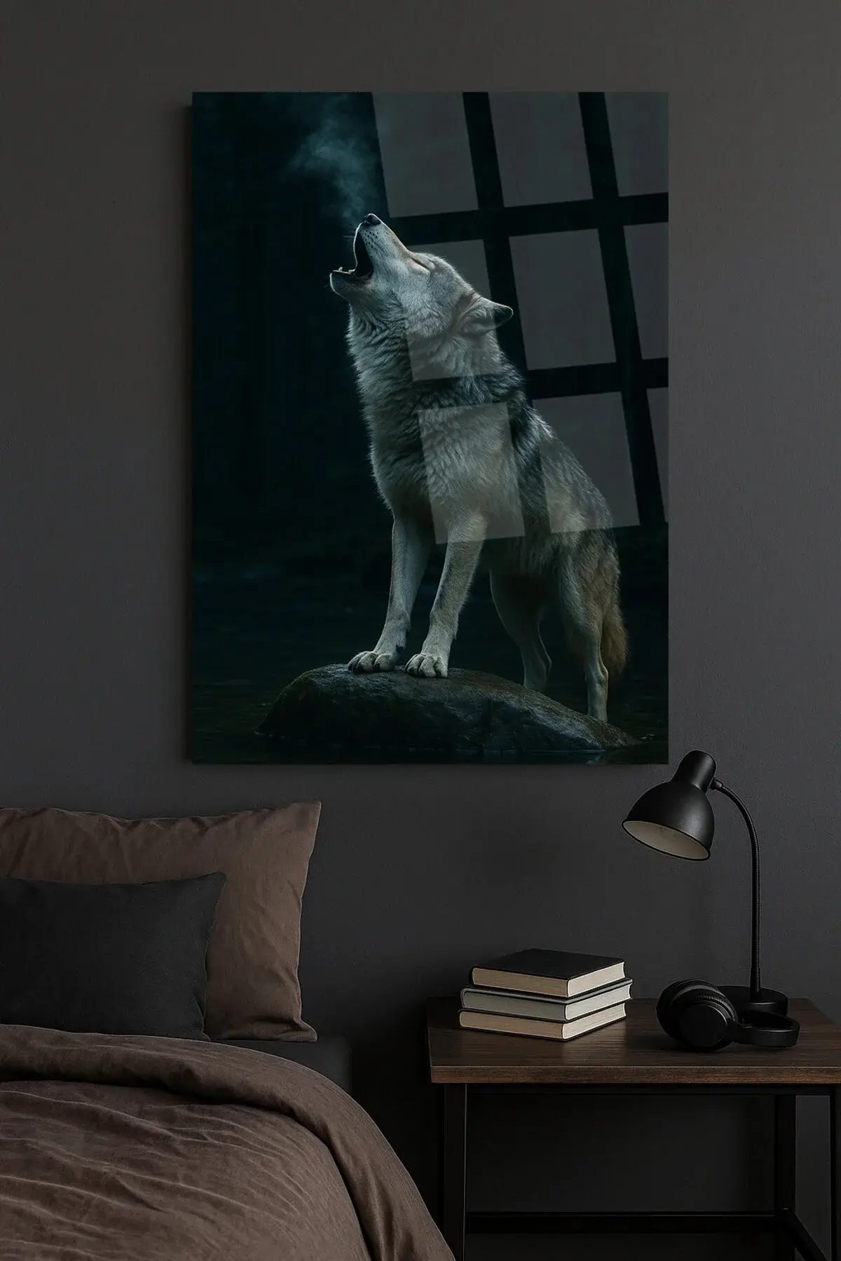HARİKA ULUYAN KURT GÖRSELİ DOĞA TABLOSU KIRILMAZ CAM TABLO LÜKS MODERN TABLO EV HEDİYESİ Siyah