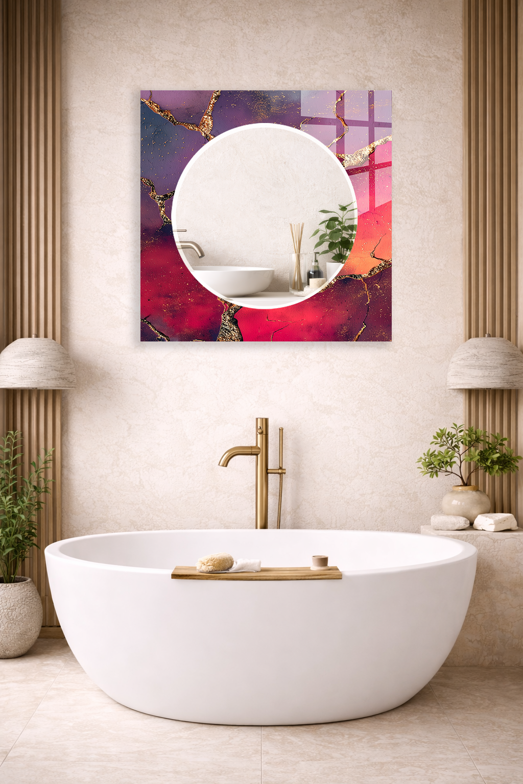 Hem tablo hem ayna formundaki bu dekoratif duvar aynası, bulunduğu mekâna derinlik, ışık ve zarafet kazandıran tamamlayıcı bir tasarım ürünüdür.