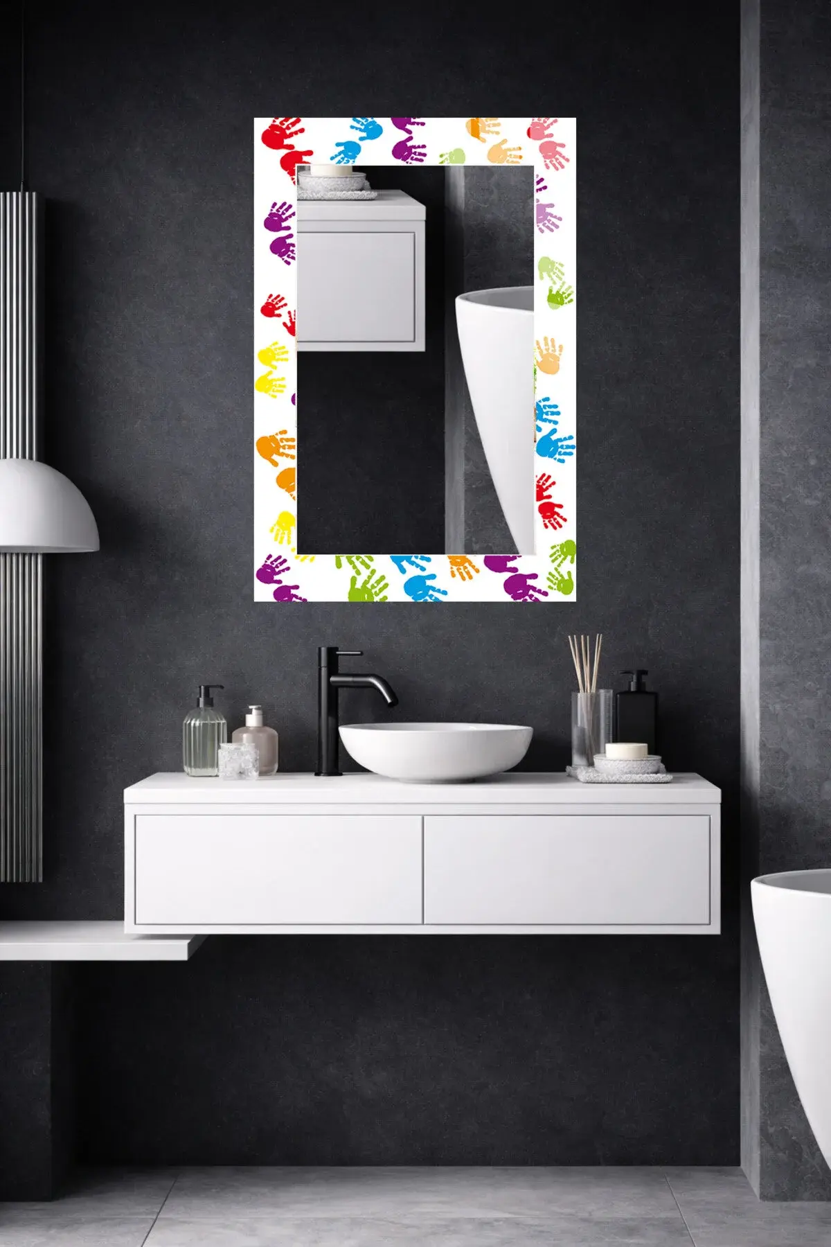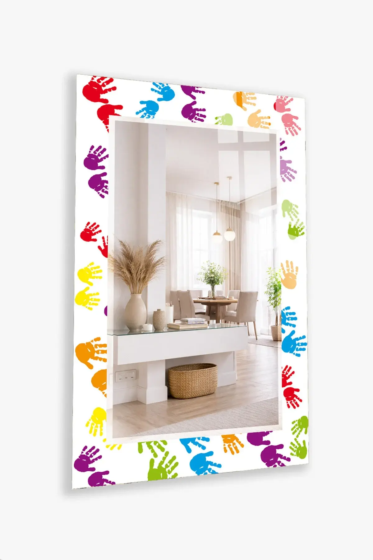 HEM TABLO HEM AYNA AYNA TASARIM CANLI RENKLERLE EL İZİ DESENLİ CAM DUVAR AYNASI EĞLENCELİ MEKANLAR