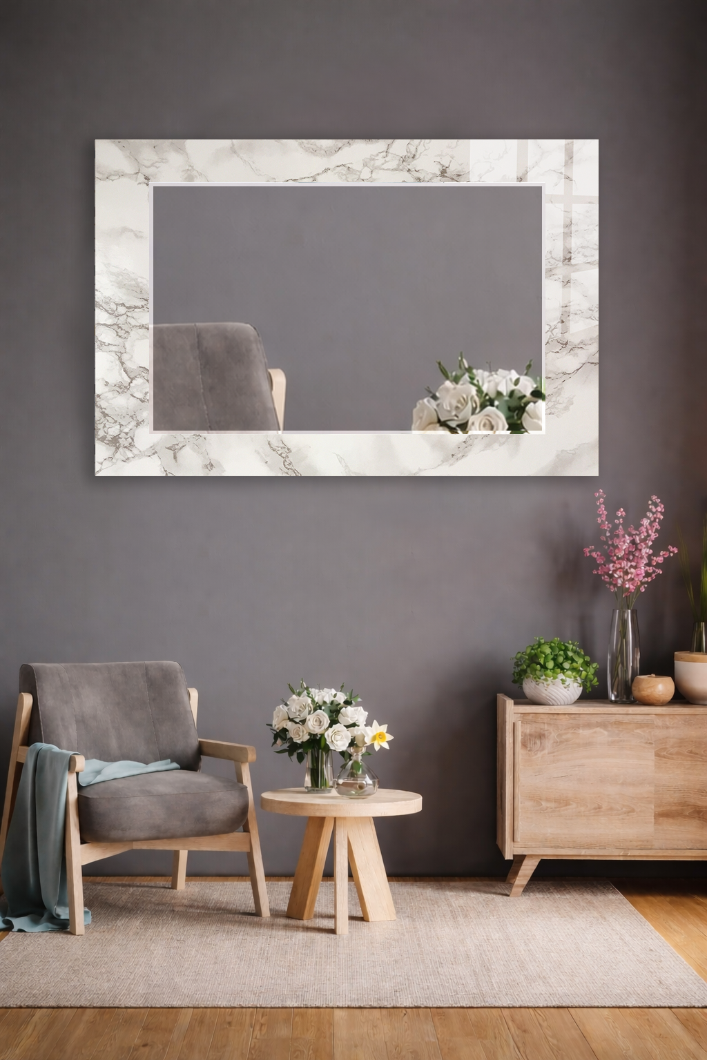 HEM TABLO HEM AYNA BEYAZ MERMER LÜKS TASARIM CAM DUVAR AYNASI EV DEKORU