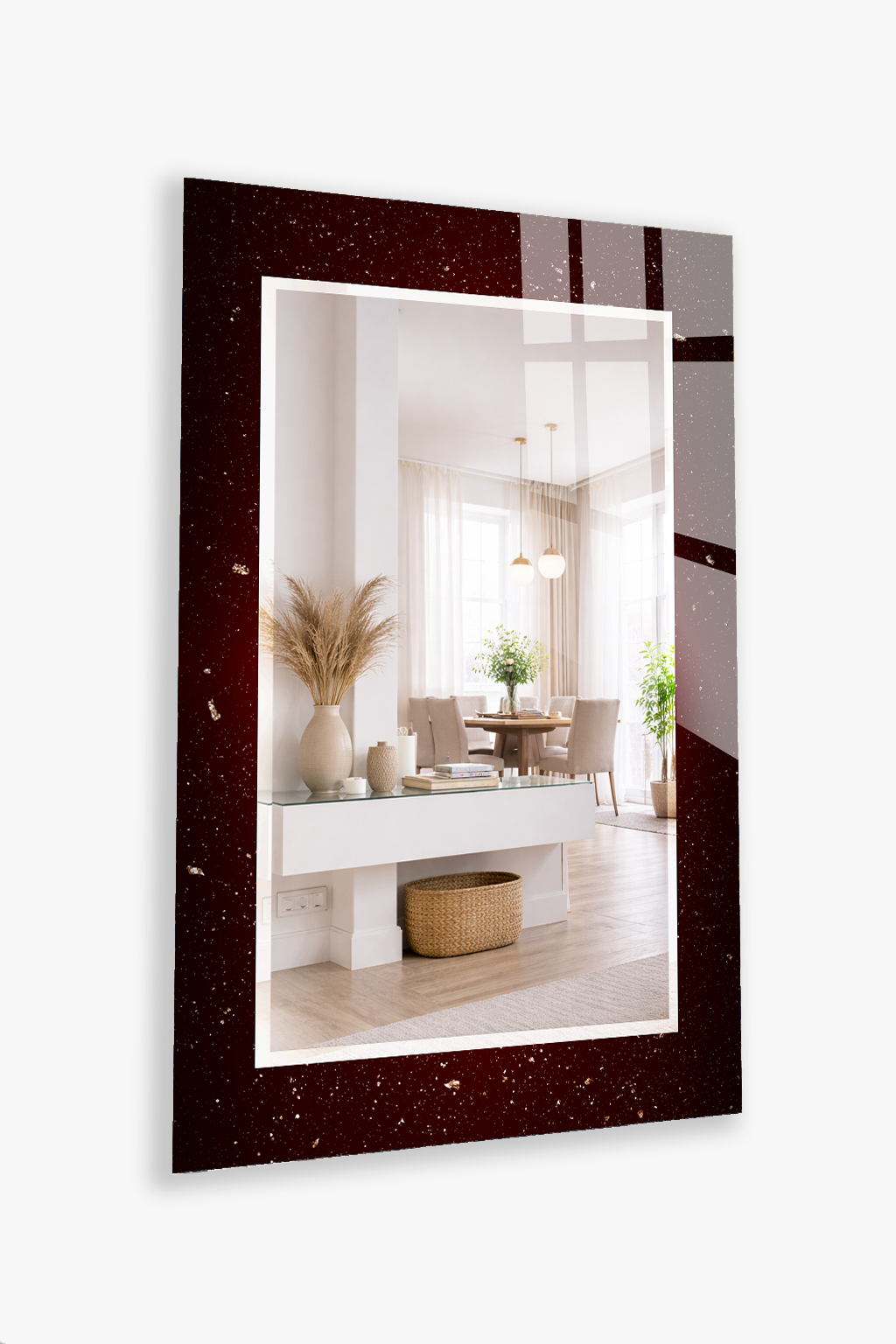 HEM TABLO HEM AYNA BORDO YILDIZLI DOKU DESEN CAM DUVAR AYNASI EV DEKORU