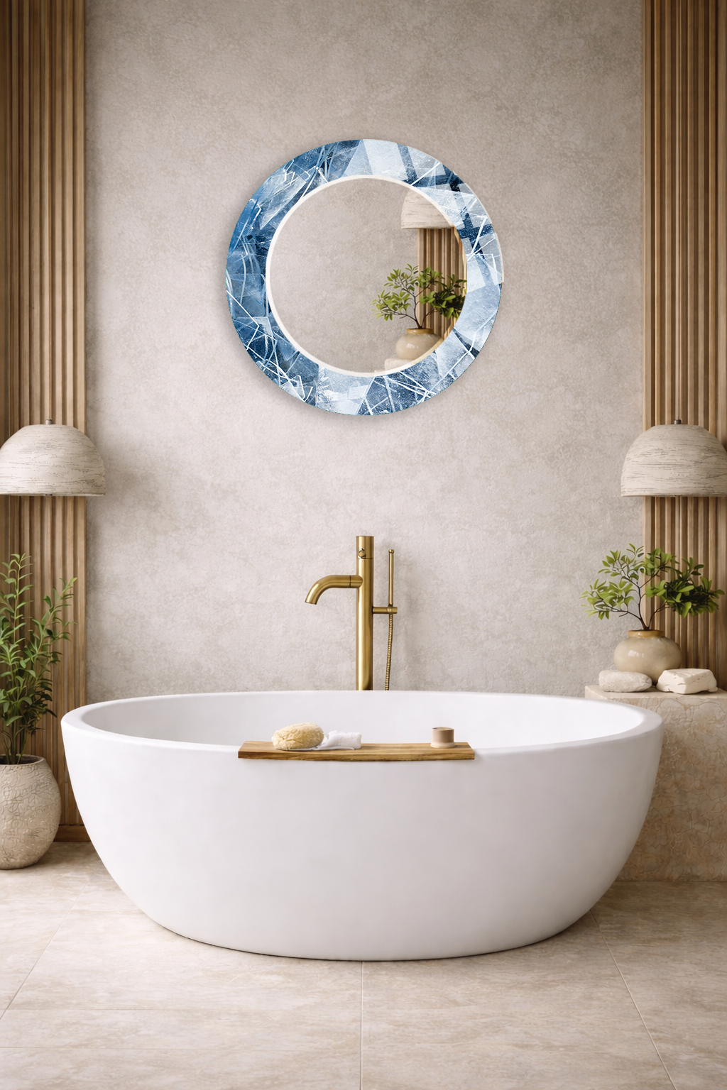 Hem tablo hem ayna formundaki bu dekoratif duvar aynası, bulunduğu mekâna derinlik, ışık ve zarafet kazandıran tamamlayıcı bir tasarım ürünüdür.