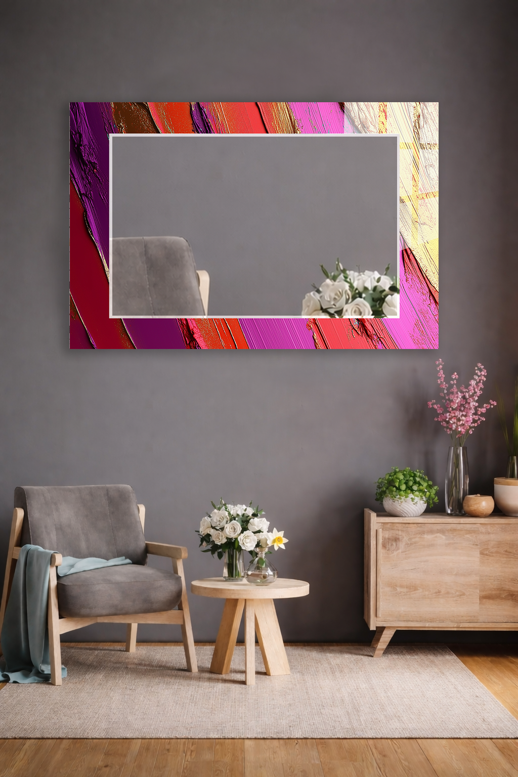 HEM TABLO HEM AYNA CANLI FIRÇA DARBELİ SOYUT SANAT CAM DUVAR AYNASI EV DEKORU