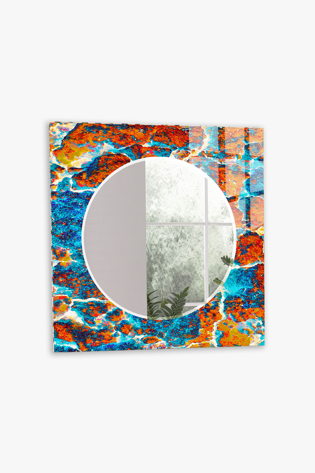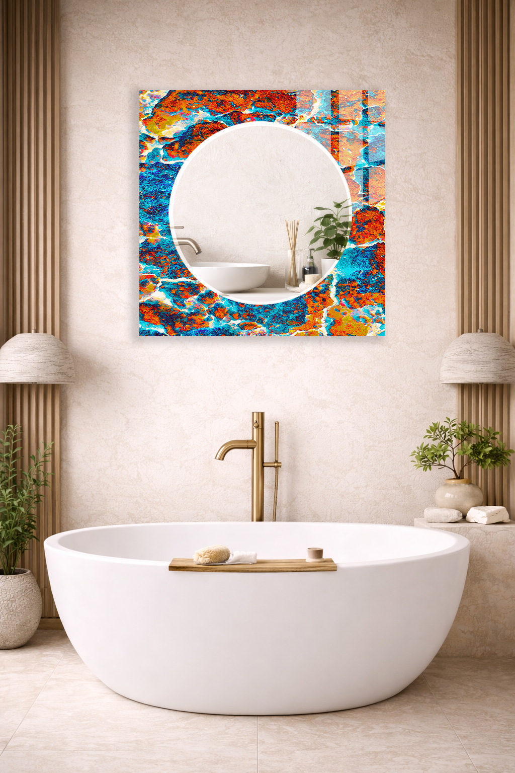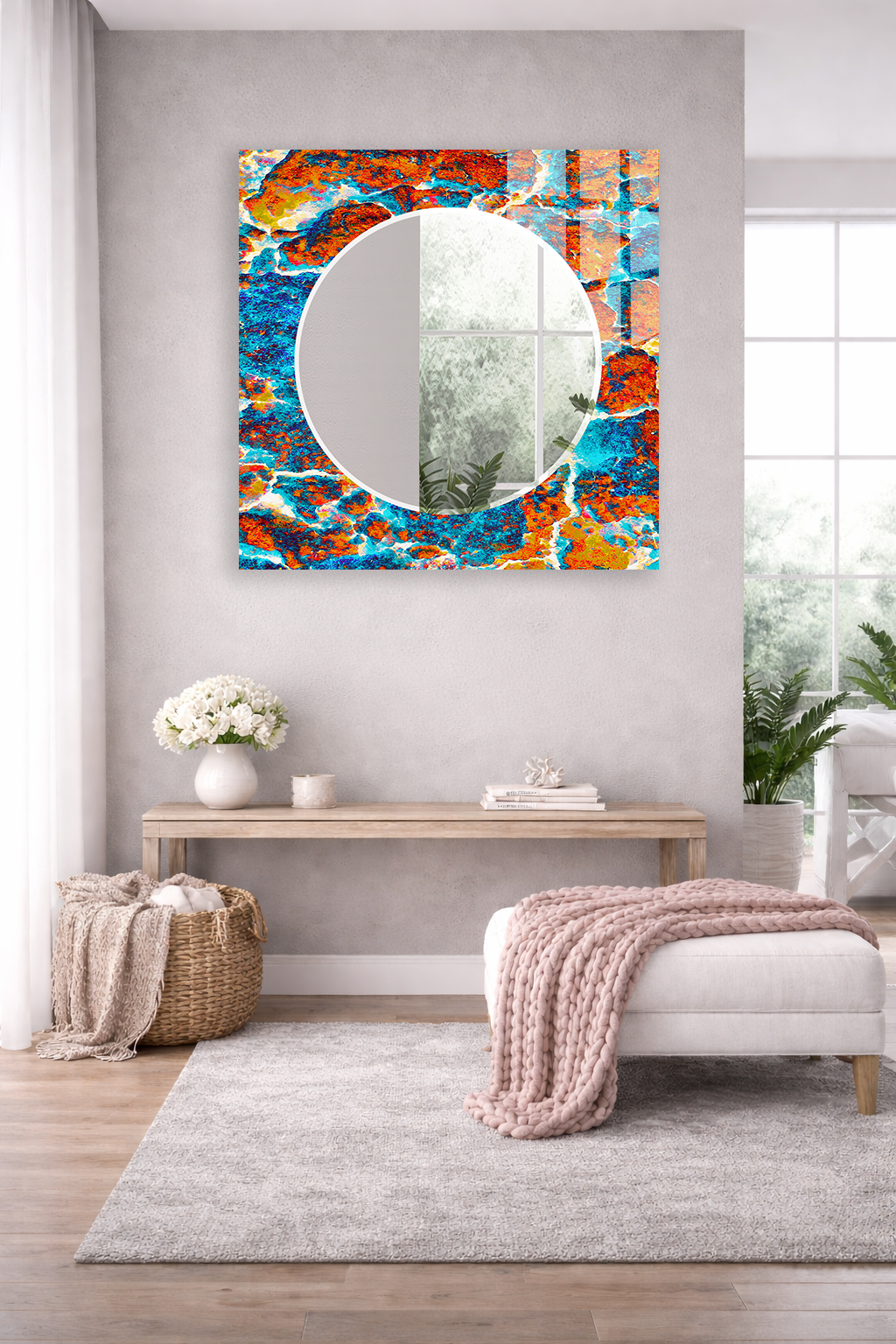 HEM TABLO HEM AYNA CANLI RENK SOYUT MERMER DESEN CAM DUVAR AYNASI EV DEKORU