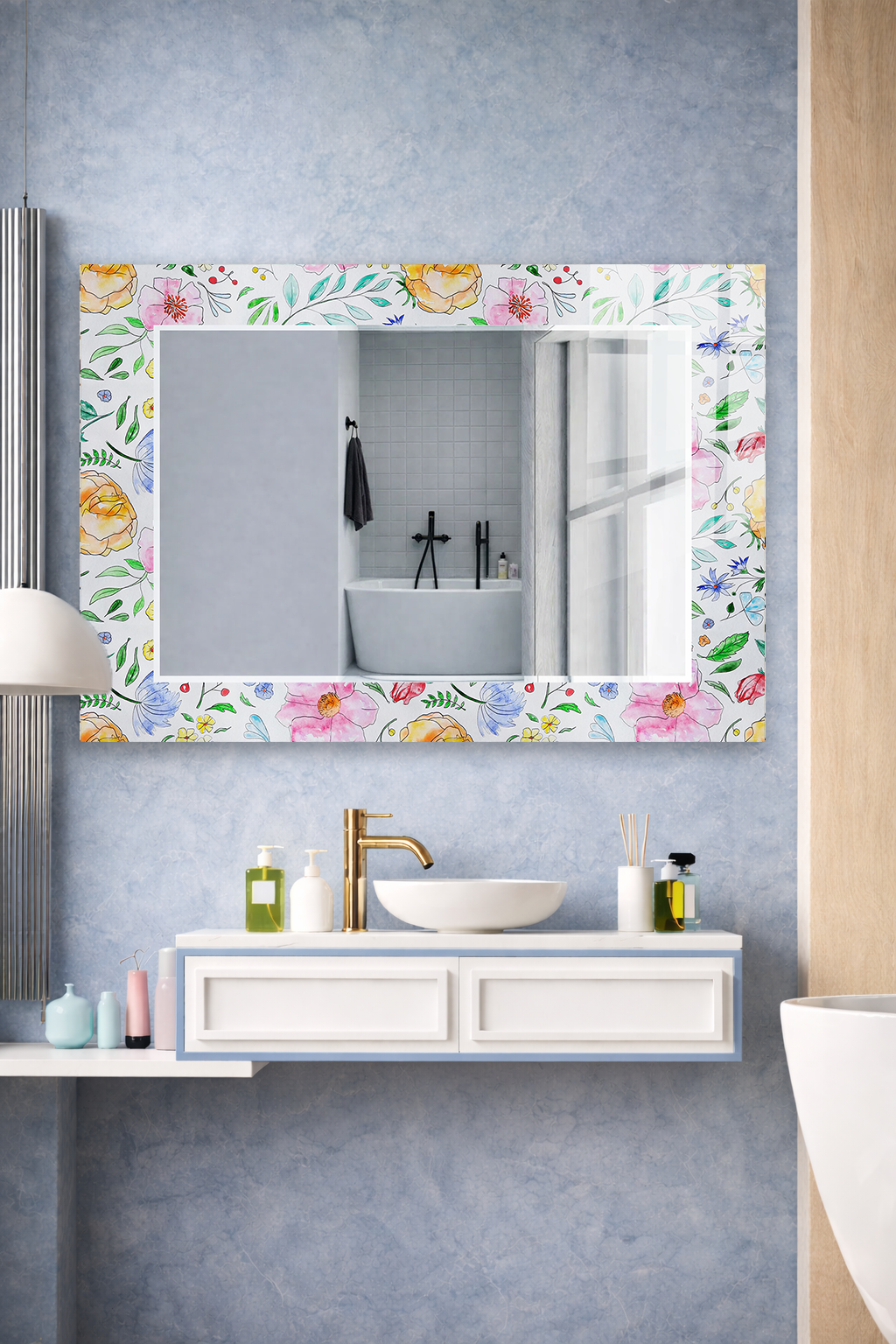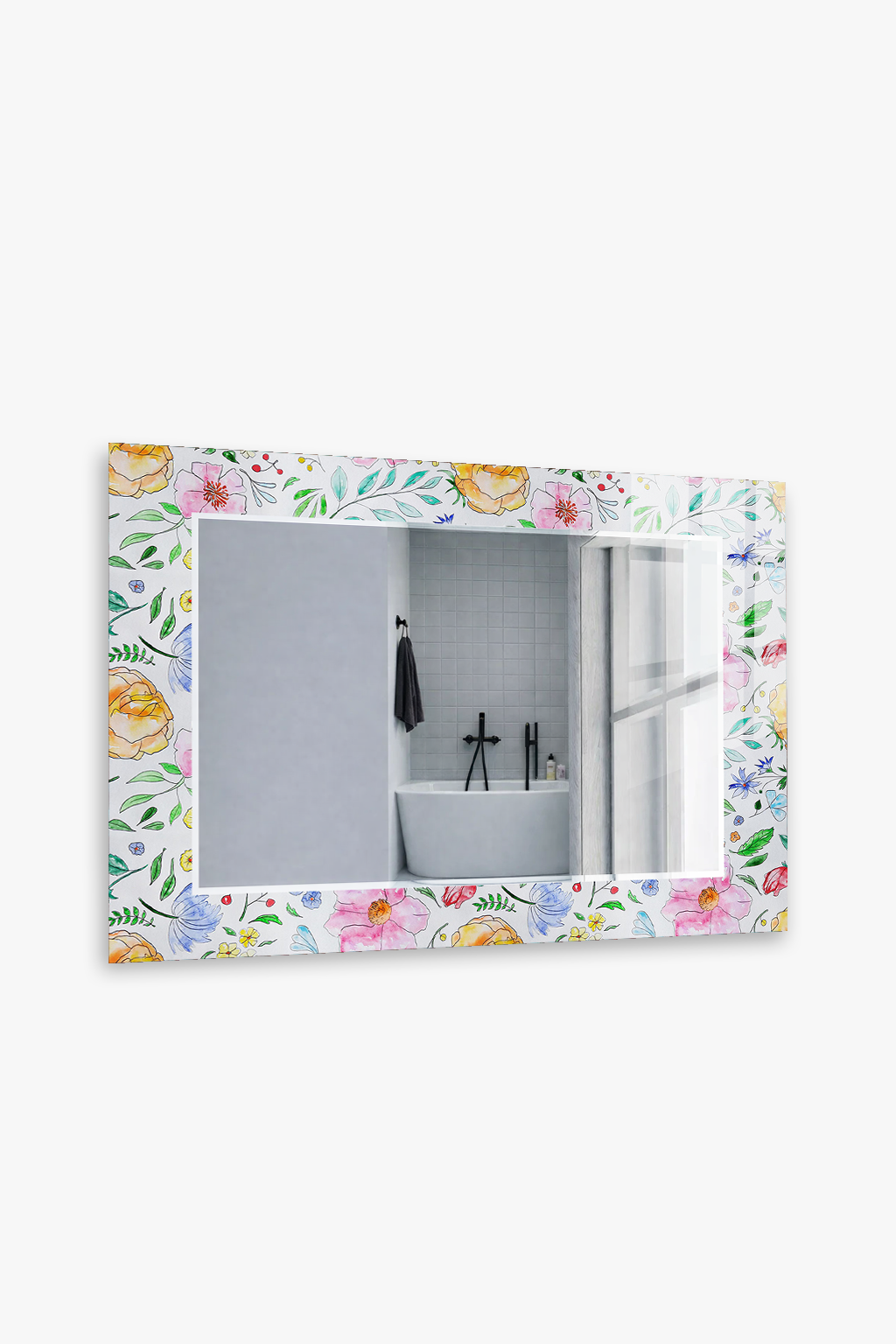 HEM TABLO HEM AYNA ÇİÇEK DESEN PASTEL DEKORATİF CAM DUVAR AYNASI EV DEKORU