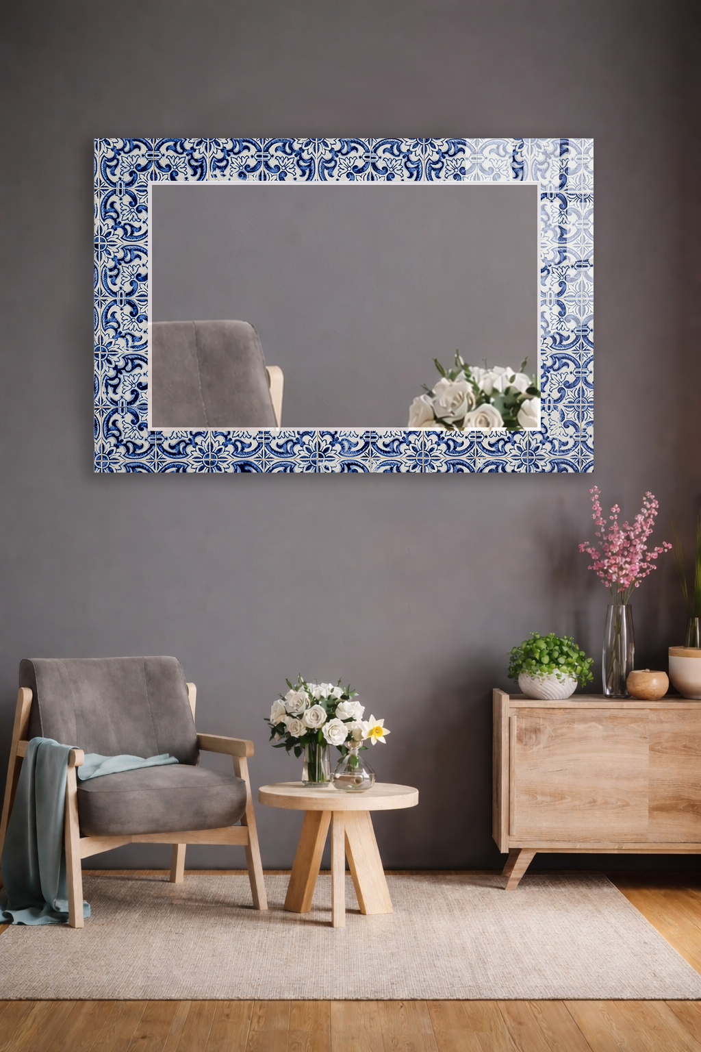 HEM TABLO HEM AYNA ÇİNİ DESEN OTANTİK CAM DUVAR AYNASI EV DEKORU