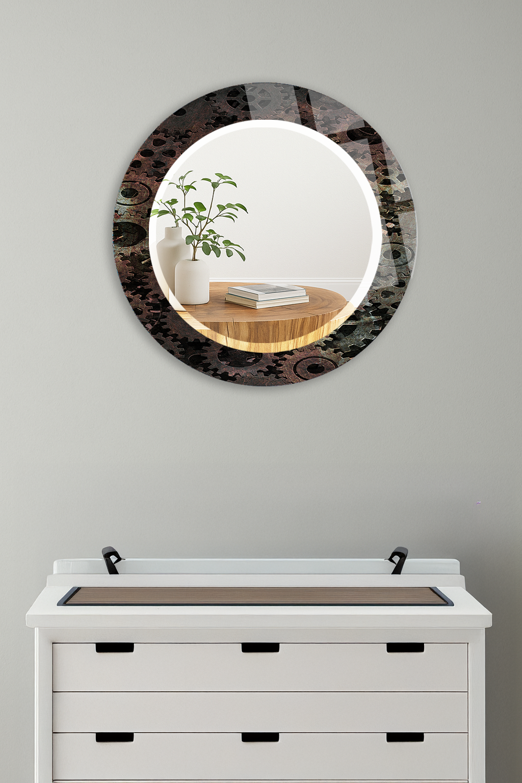 HEM TABLO HEM AYNA ENDÜSTRİYEL DİŞLİ MEKANİZMA TASARIM CAM DUVAR AYNASI EV DEKORU