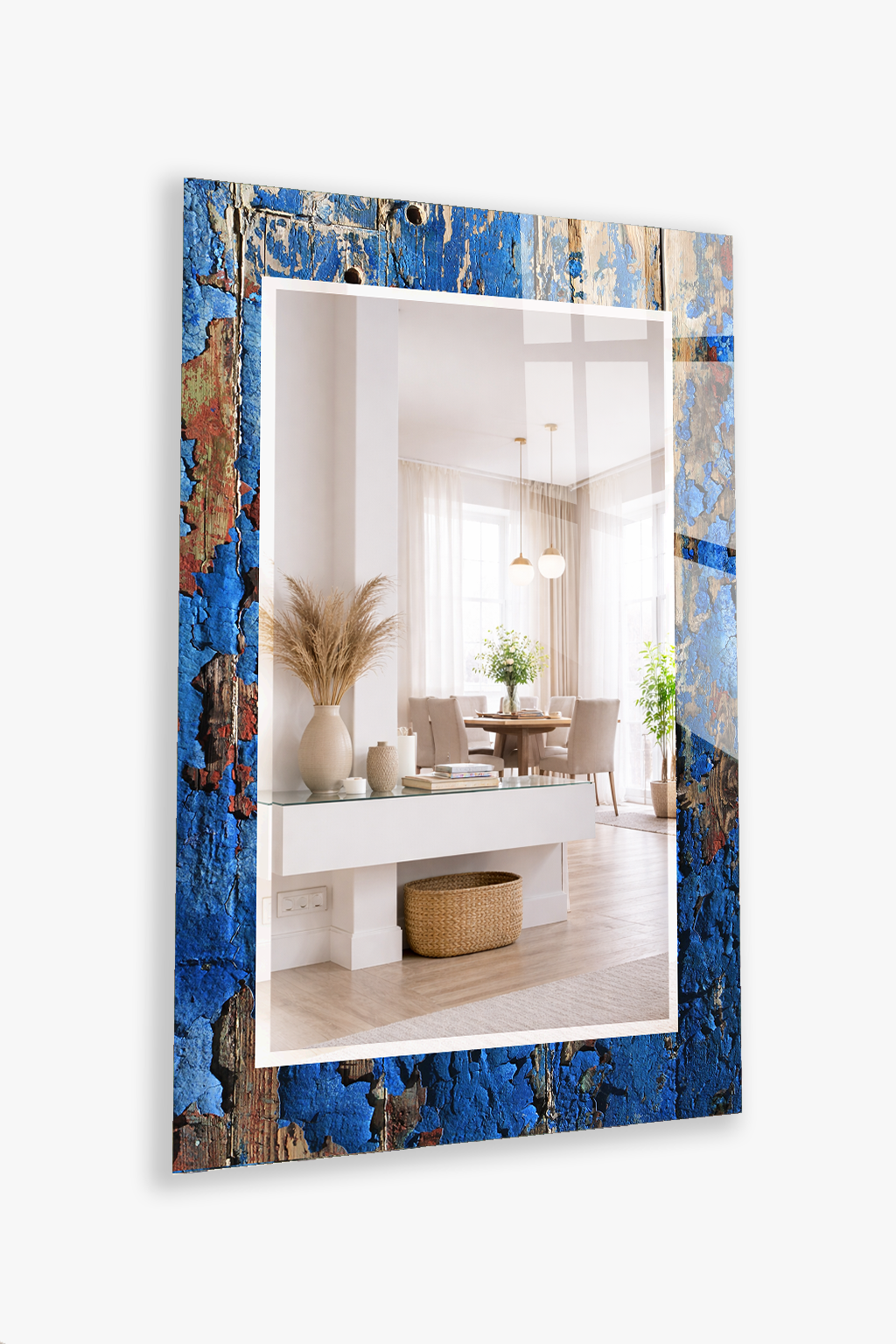 HEM TABLO HEM AYNA ESKİ AHŞAP DOKU VİNTAGE DESEN CAM DUVAR AYNASI EV DEKORU
