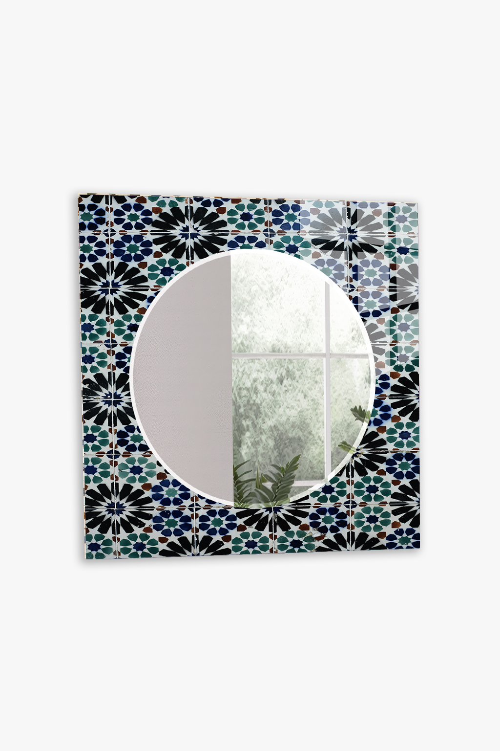 HEM TABLO HEM AYNA GEOMETRİK RENKLİ DESENLİ CAM DUVAR AYNASI EV DEKORU