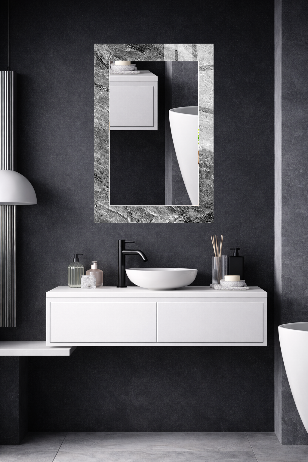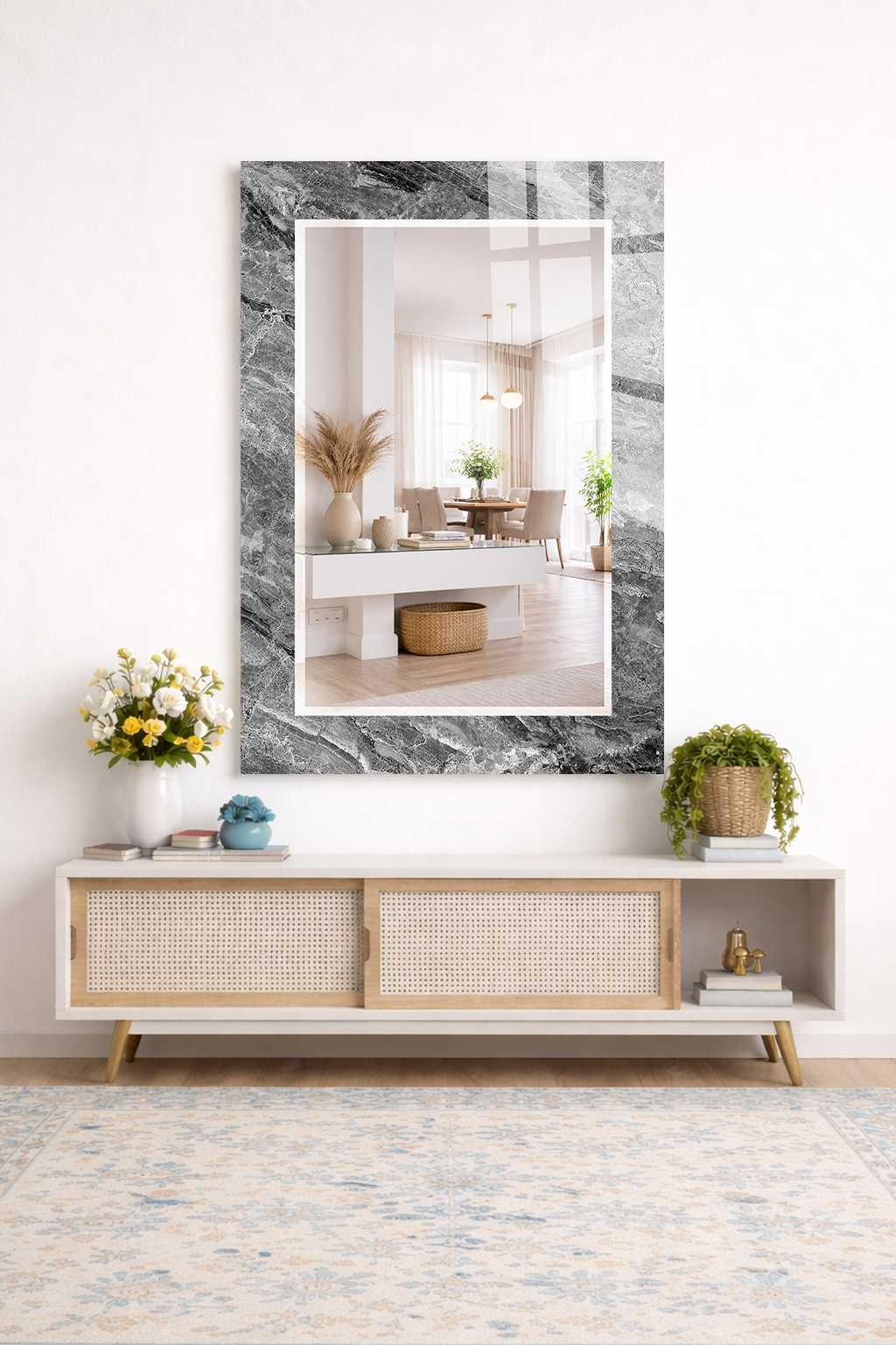 HEM TABLO HEM AYNA GRİ MERMER DOĞAL TAŞ DOKU CAM DUVAR AYNASI EV DEKORU
