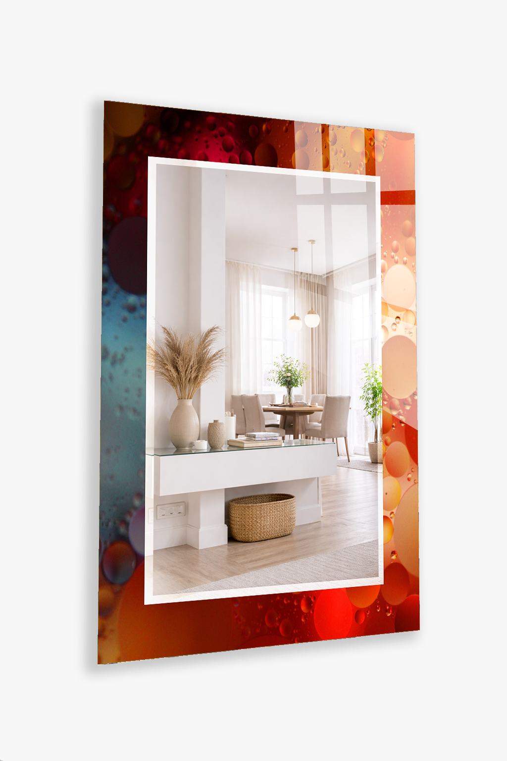 HEM TABLO HEM AYNA KIRMIZI TURUNCU BALON SIVI SANAT CAM DUVAR AYNASI EV DEKORU