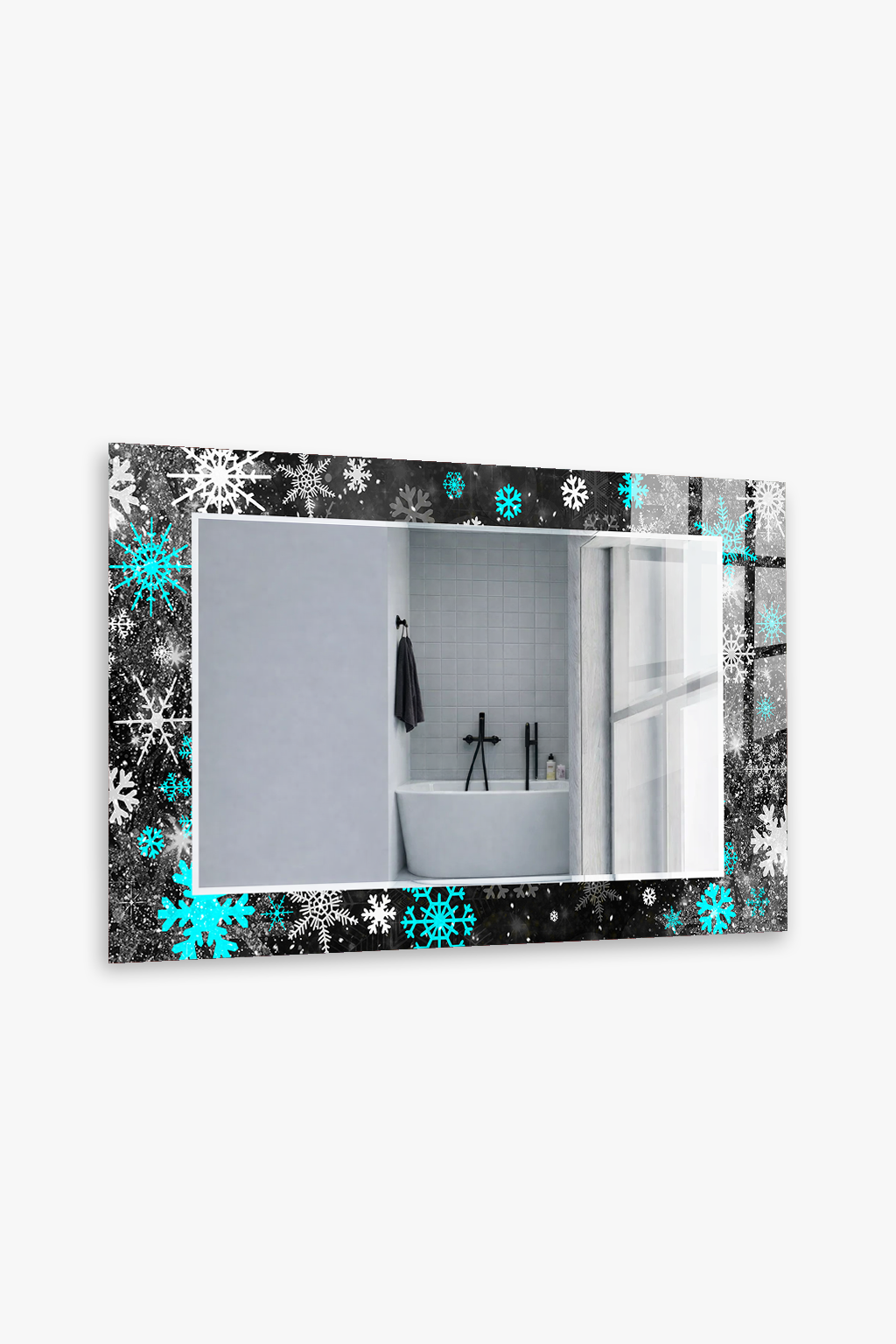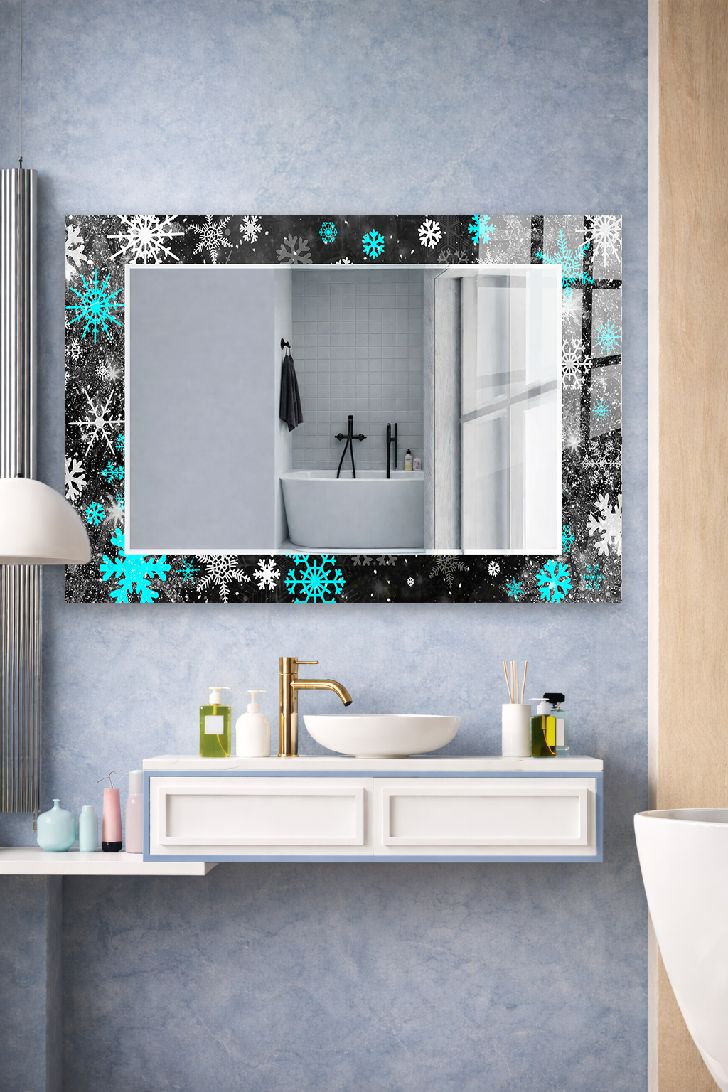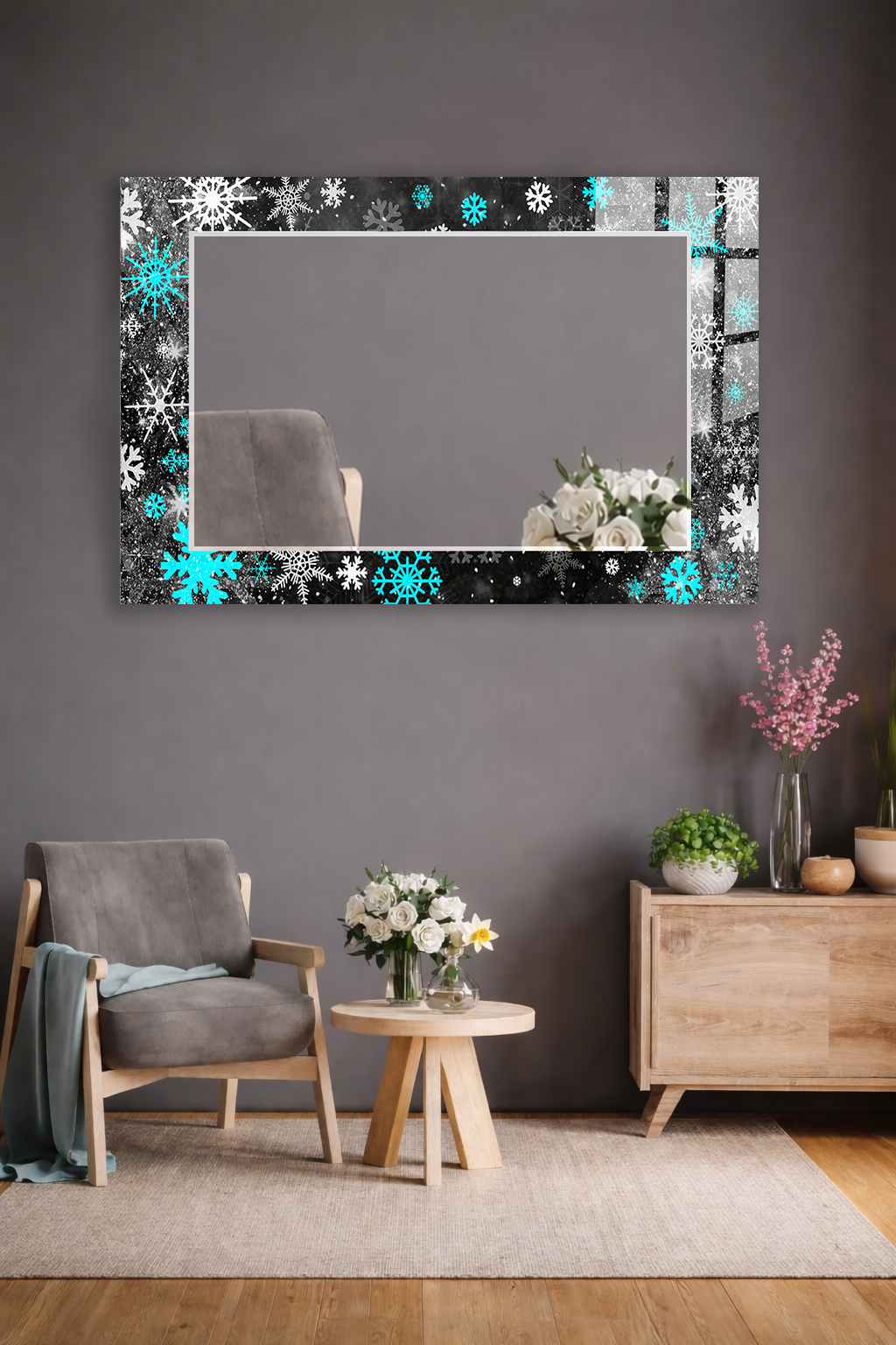 HEM TABLO HEM AYNA KIŞ TEMALI KAR TANESİ DESEN CAM DUVAR AYNASI EV DEKORU
