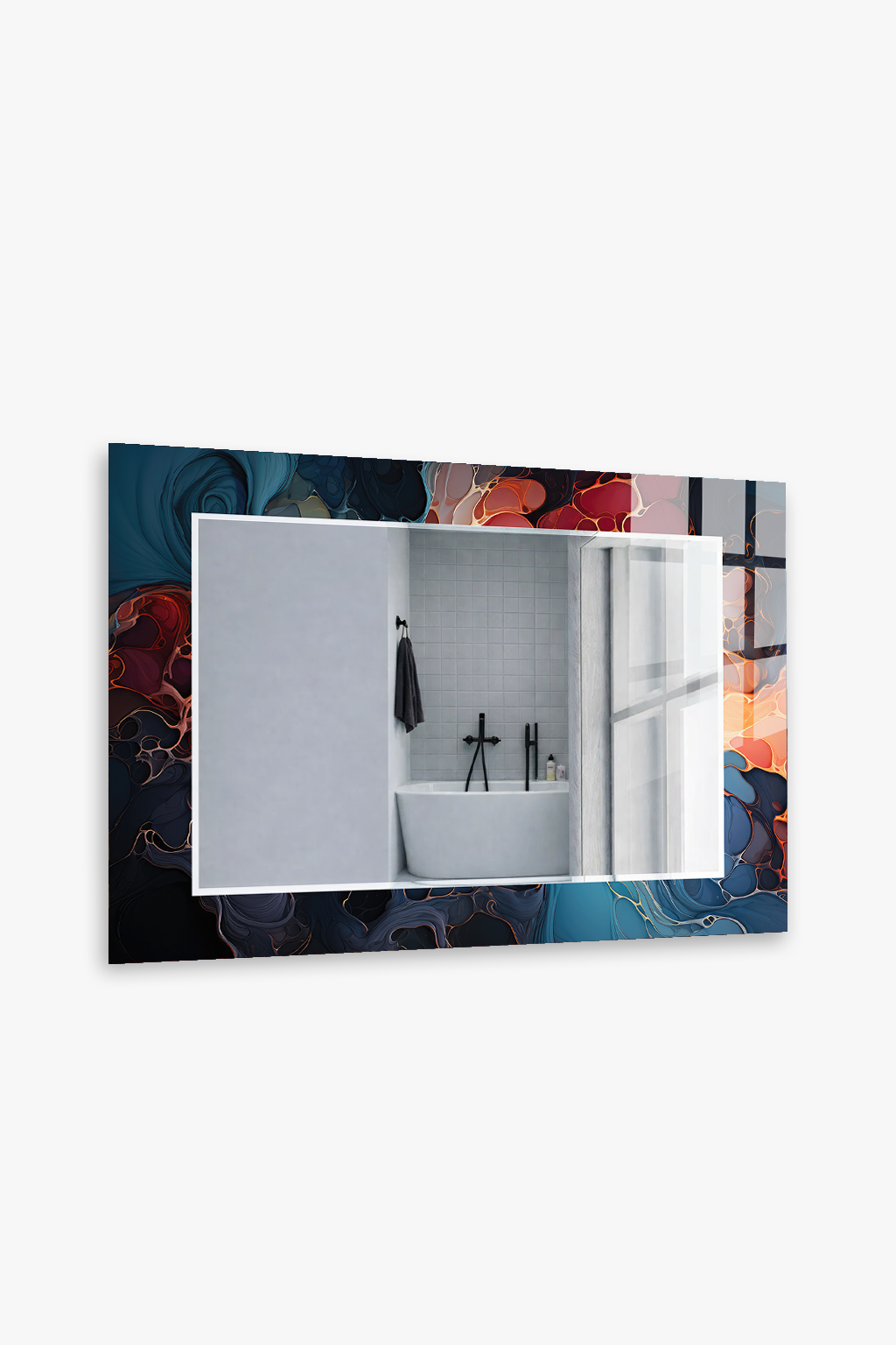 Hem tablo hem ayna formundaki bu dekoratif duvar aynası, bulunduğu mekâna derinlik, ışık ve zarafet kazandıran tamamlayıcı bir tasarım ürünüdür.