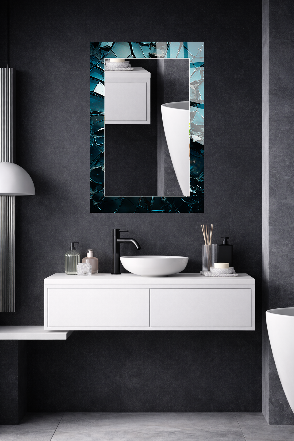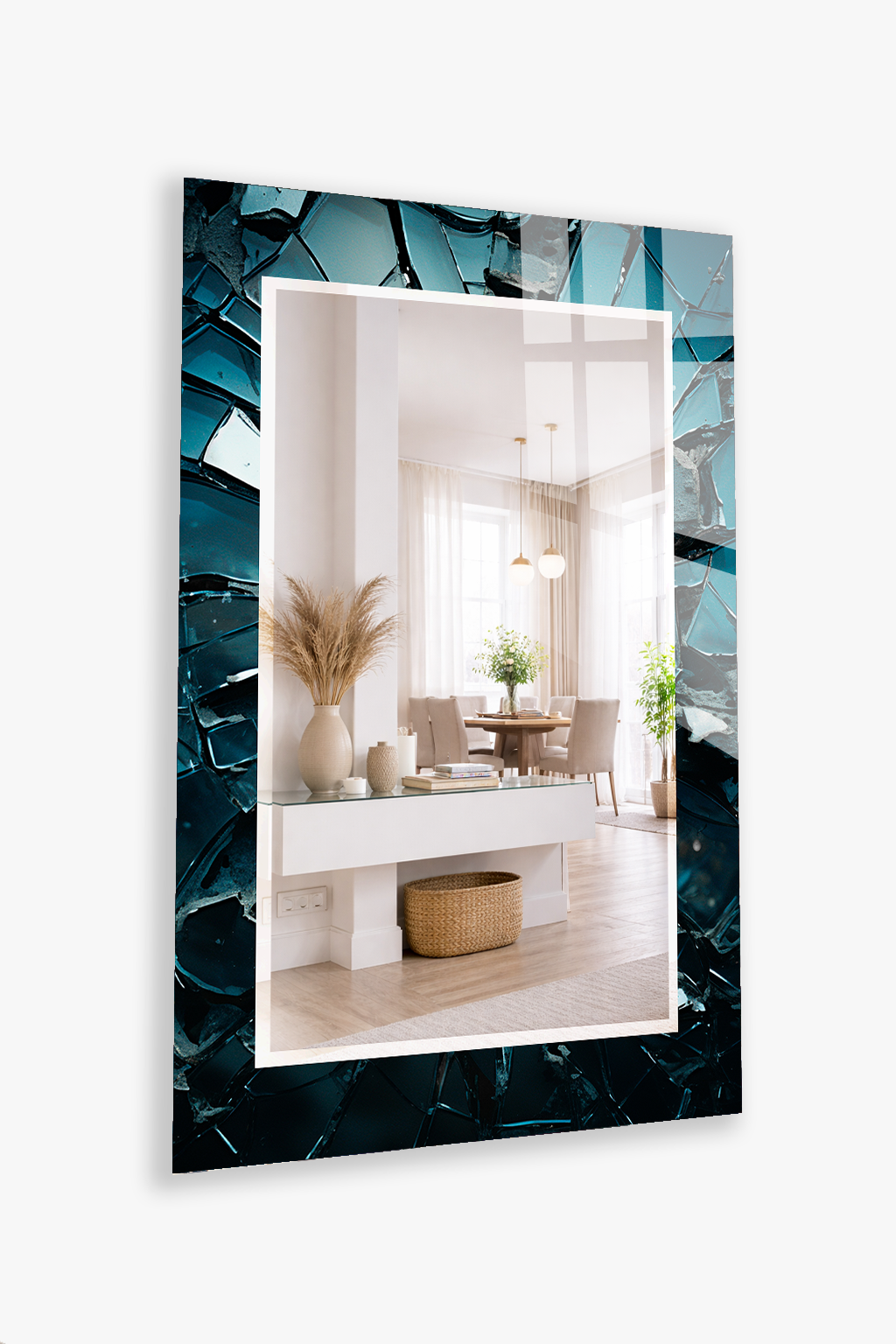 HEM TABLO HEM AYNA KOYU TURKUAZ KIRIK CAM DOKU DESEN CAM DUVAR AYNASI EV DEKORU