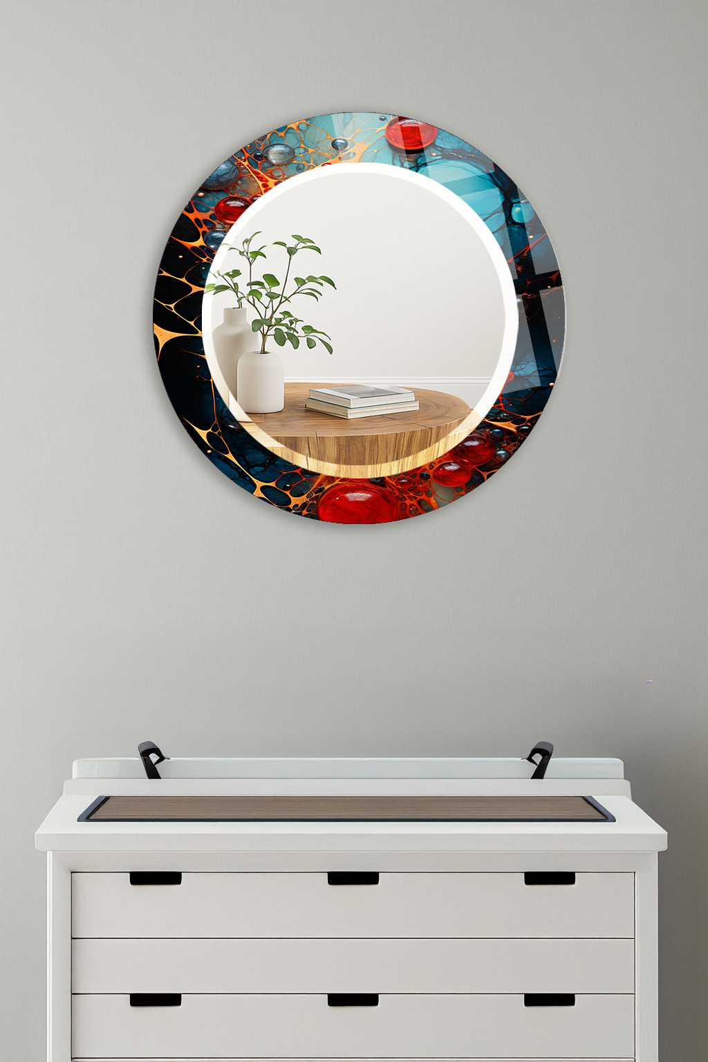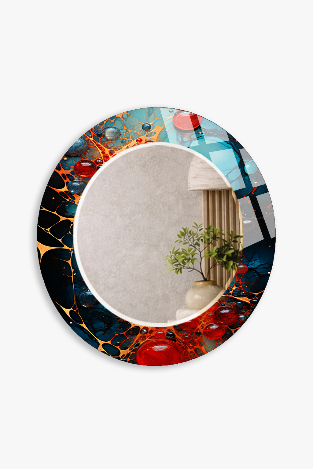HEM TABLO HEM AYNA KOZMİK RENK PARÇACIKLI TASARIMLI CAM DUVAR AYNASI EV DEKORU