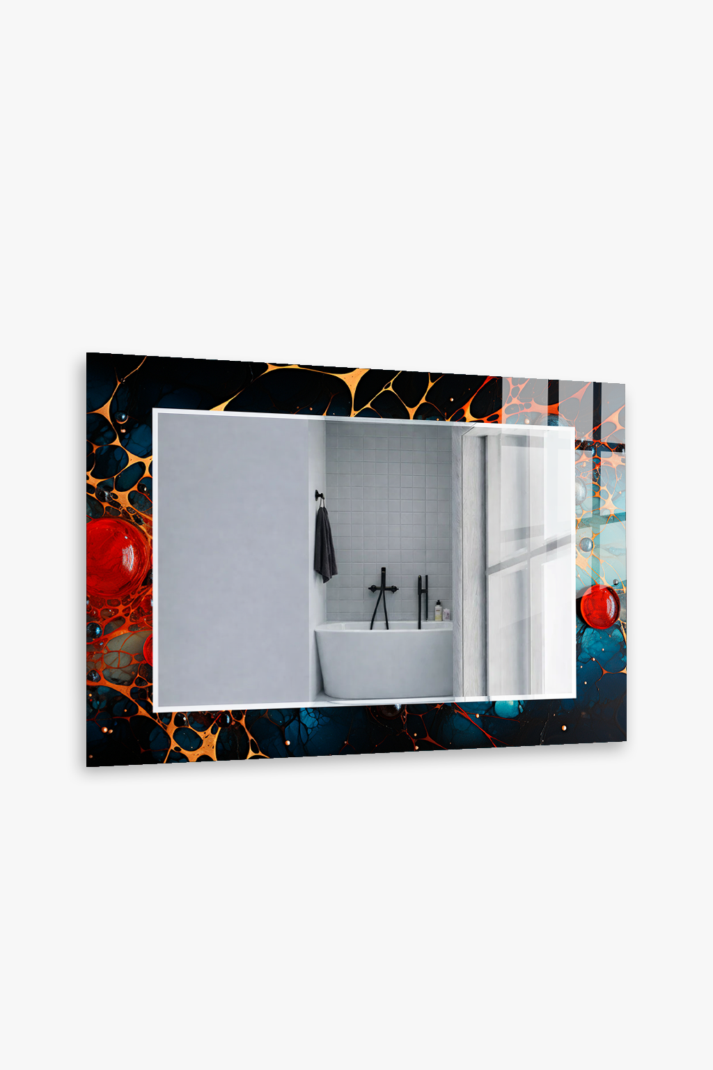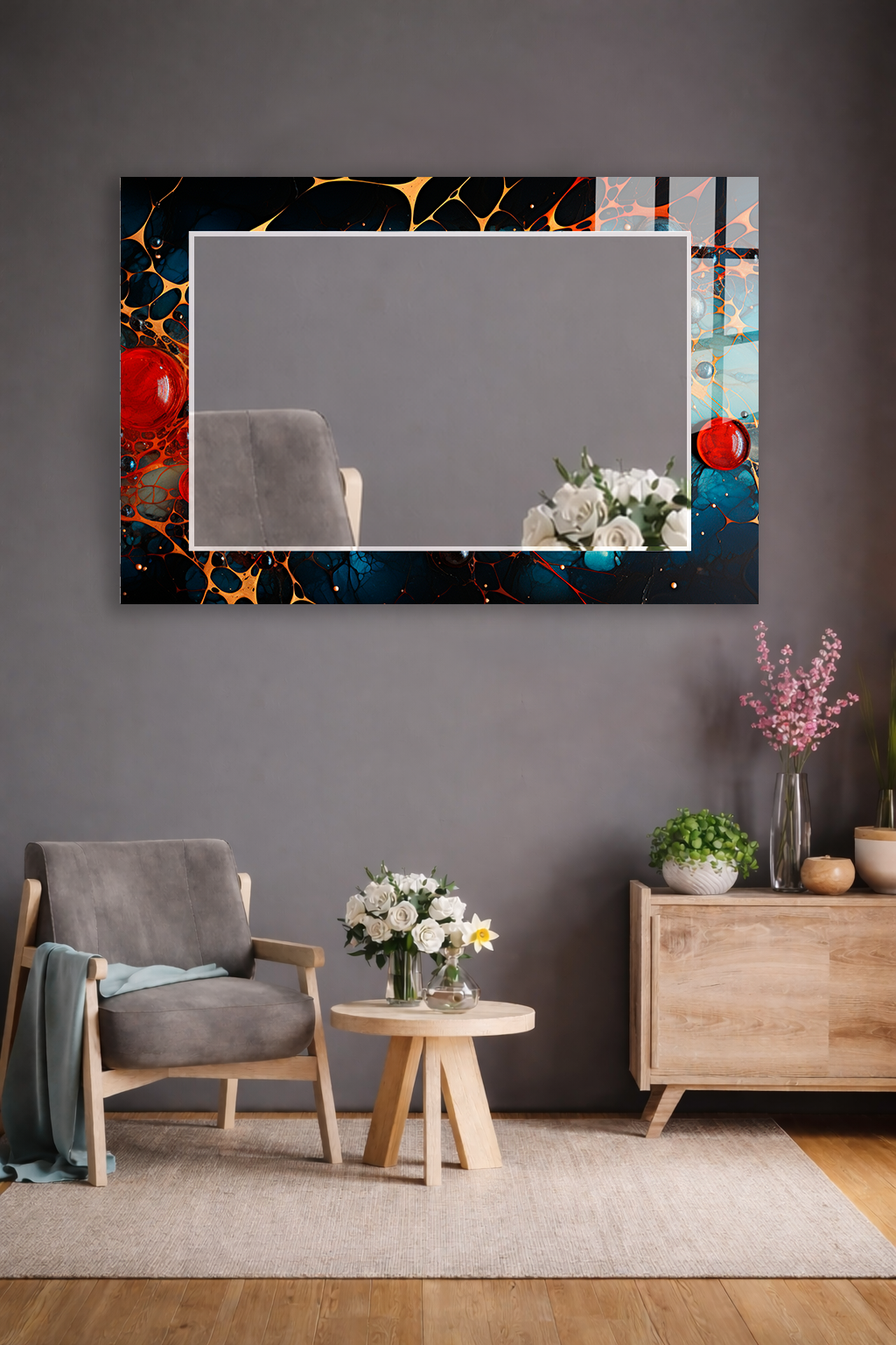HEM TABLO HEM AYNA KOZMİK SIVI HÜCRE SOYUT DESEN CAM DUVAR AYNASI EV DEKORU