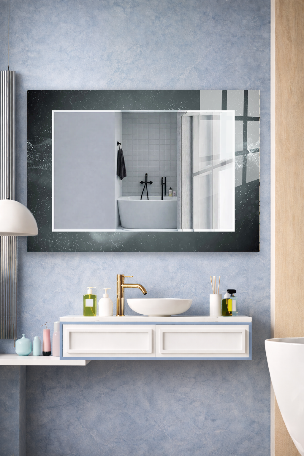 Hem dekoratif bir duvar objesi hem de kullanışlı bir ayna olarak tasarlanan bu özel ürün, ev ve ofis dekorasyonuna modern ve ferah bir atmosfer katar.
