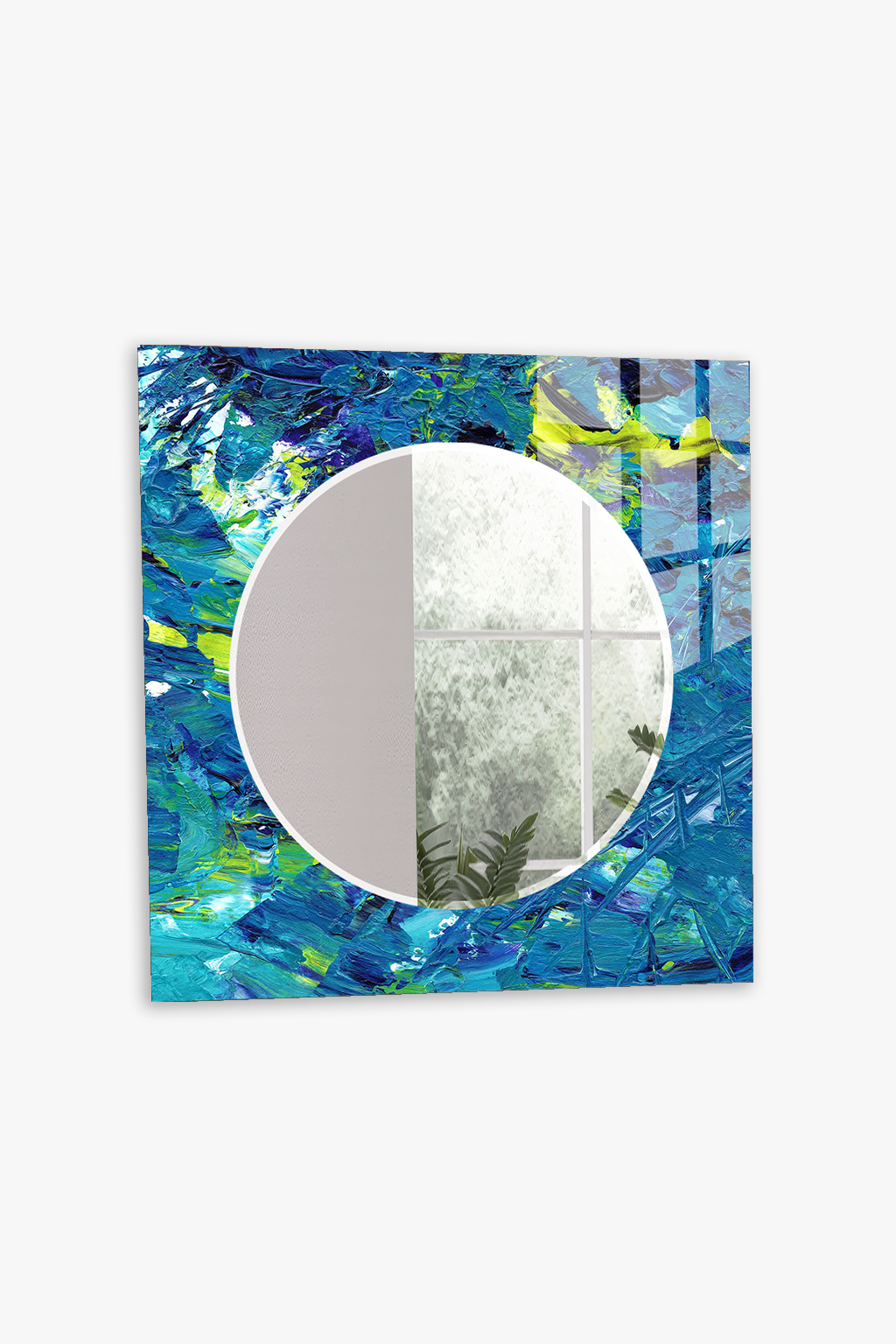HEM TABLO HEM AYNA MAVİ FIRÇA DARBELİ SANATSAL DESEN CAM DUVAR AYNASI EV DEKORU
