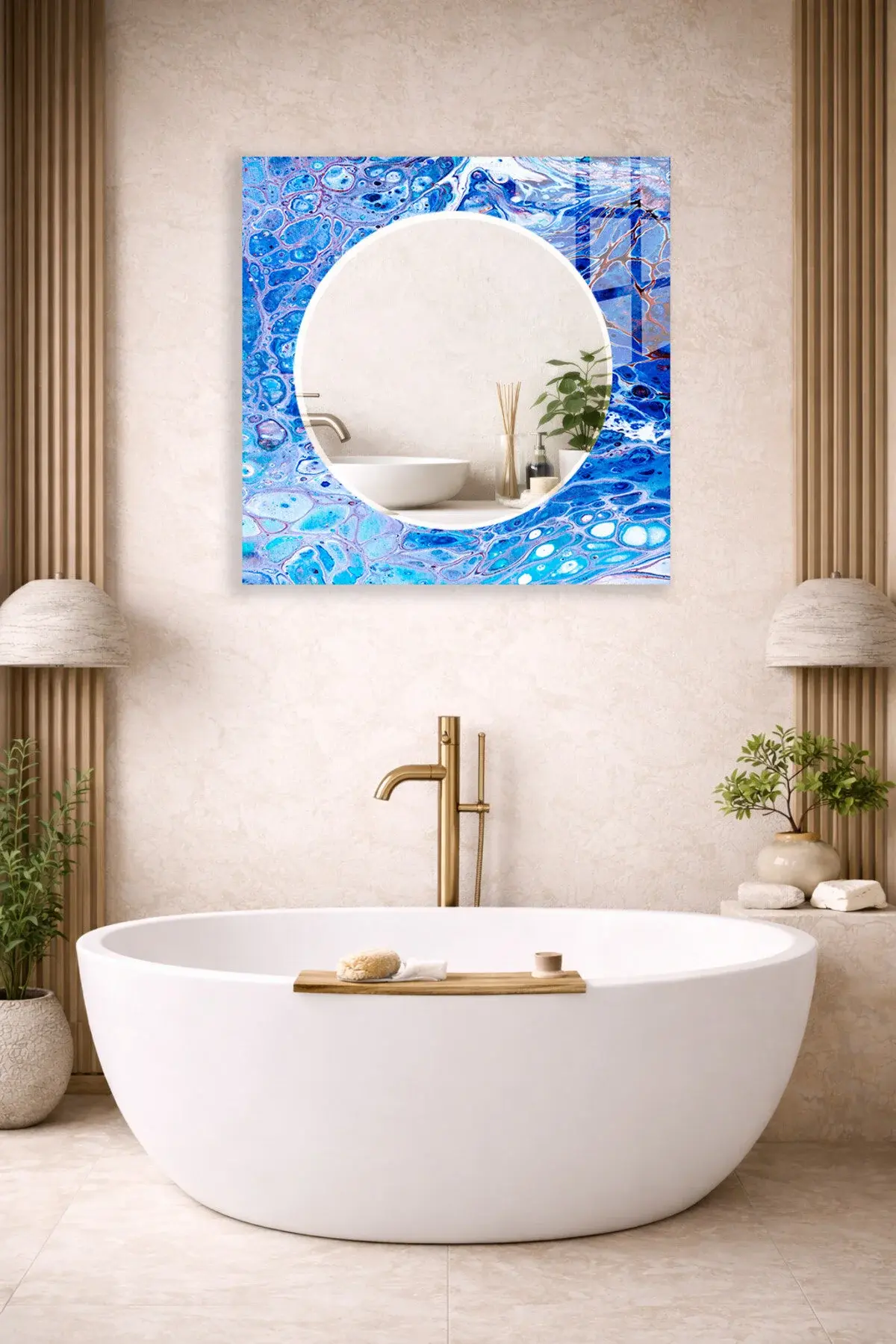 Hem tablo hem ayna formundaki bu dekoratif duvar aynası, bulunduğu mekâna derinlik, ışık ve zarafet kazandıran tamamlayıcı bir tasarım ürünüdür.