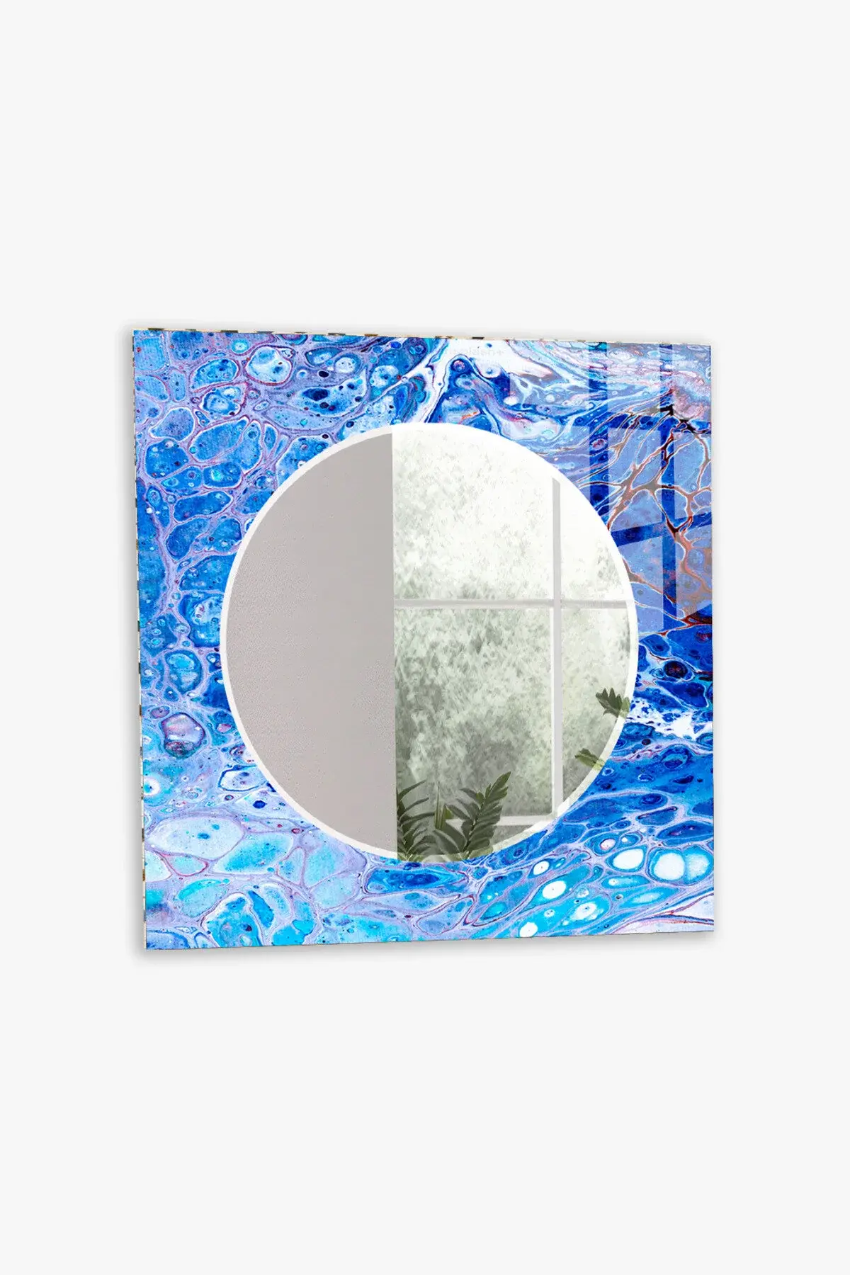 HEM TABLO HEM AYNA MAVİ HÜCRELİ SOYUT DESEN CAM DUVAR AYNASI EV DEKORU
