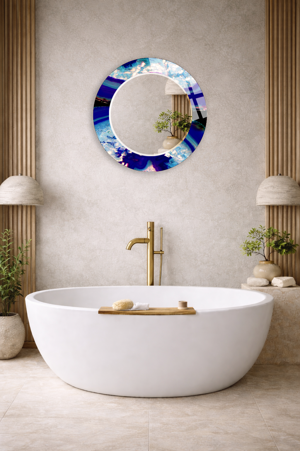 Hem tablo hem ayna formundaki bu dekoratif duvar aynası, bulunduğu mekâna derinlik, ışık ve zarafet kazandıran tamamlayıcı bir tasarım ürünüdür.