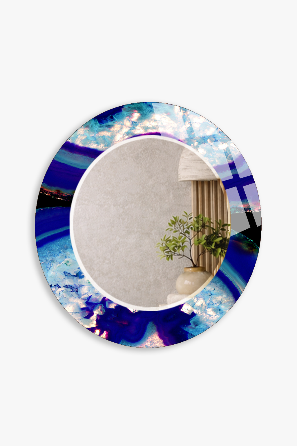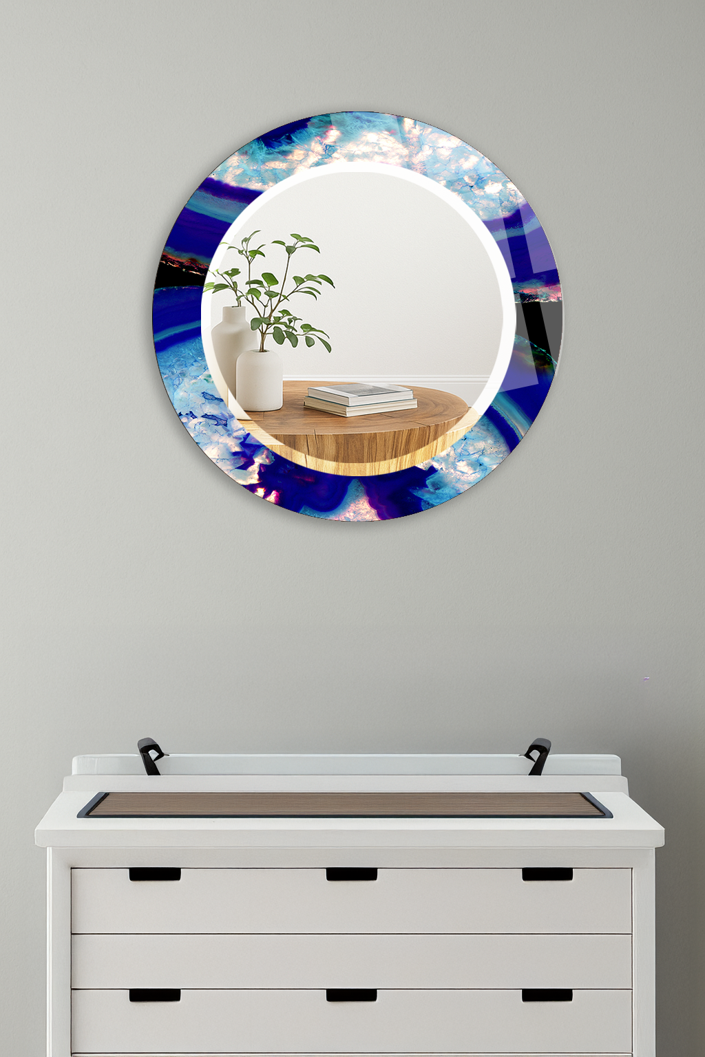 HEM TABLO HEM AYNA MAVİ MERMER AKIŞ DESENLİ CAM DUVAR AYNASI EV DEKORU