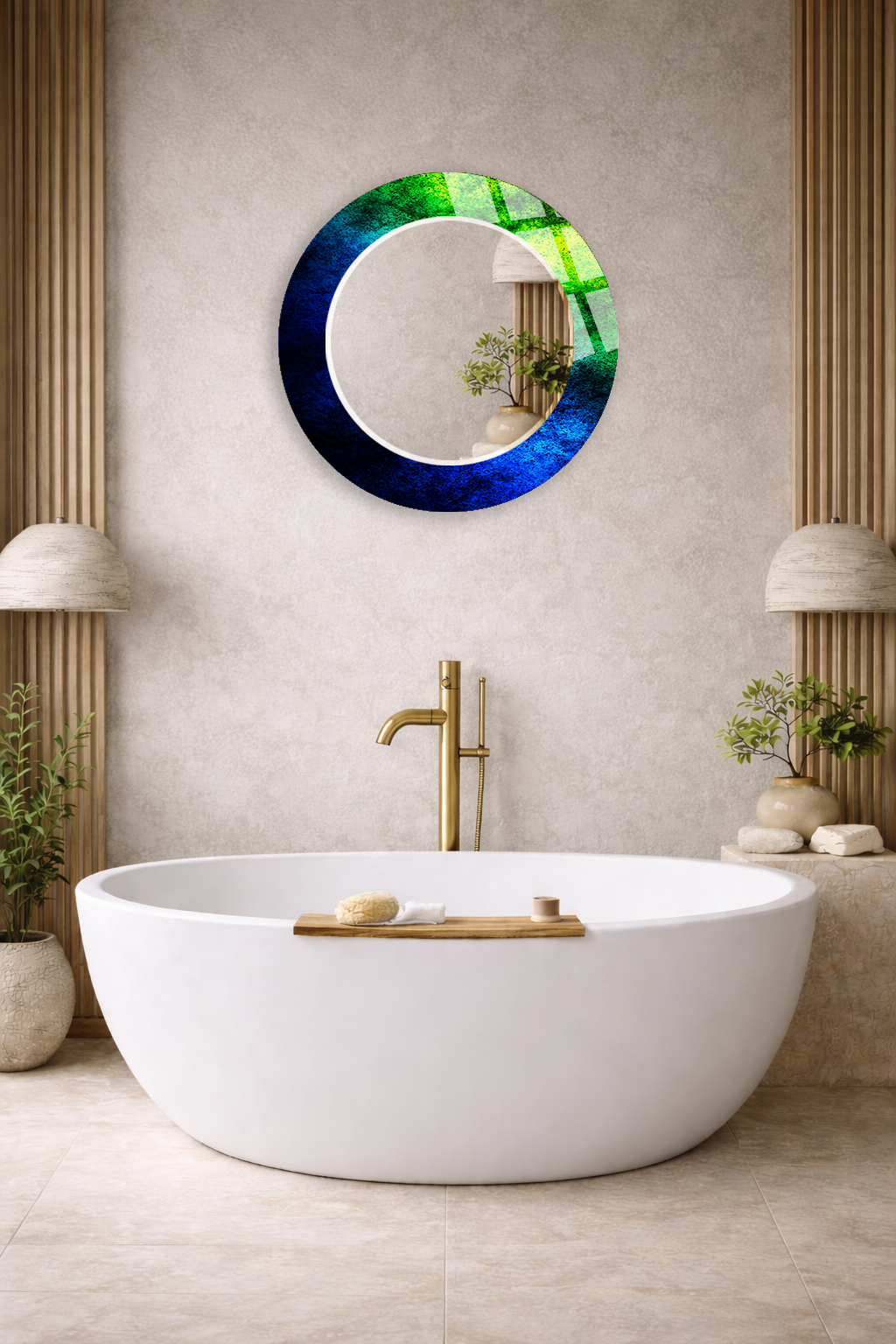 Hem tablo hem ayna formundaki bu dekoratif duvar aynası, bulunduğu mekâna derinlik, ışık ve zarafet kazandıran tamamlayıcı bir tasarım ürünüdür.