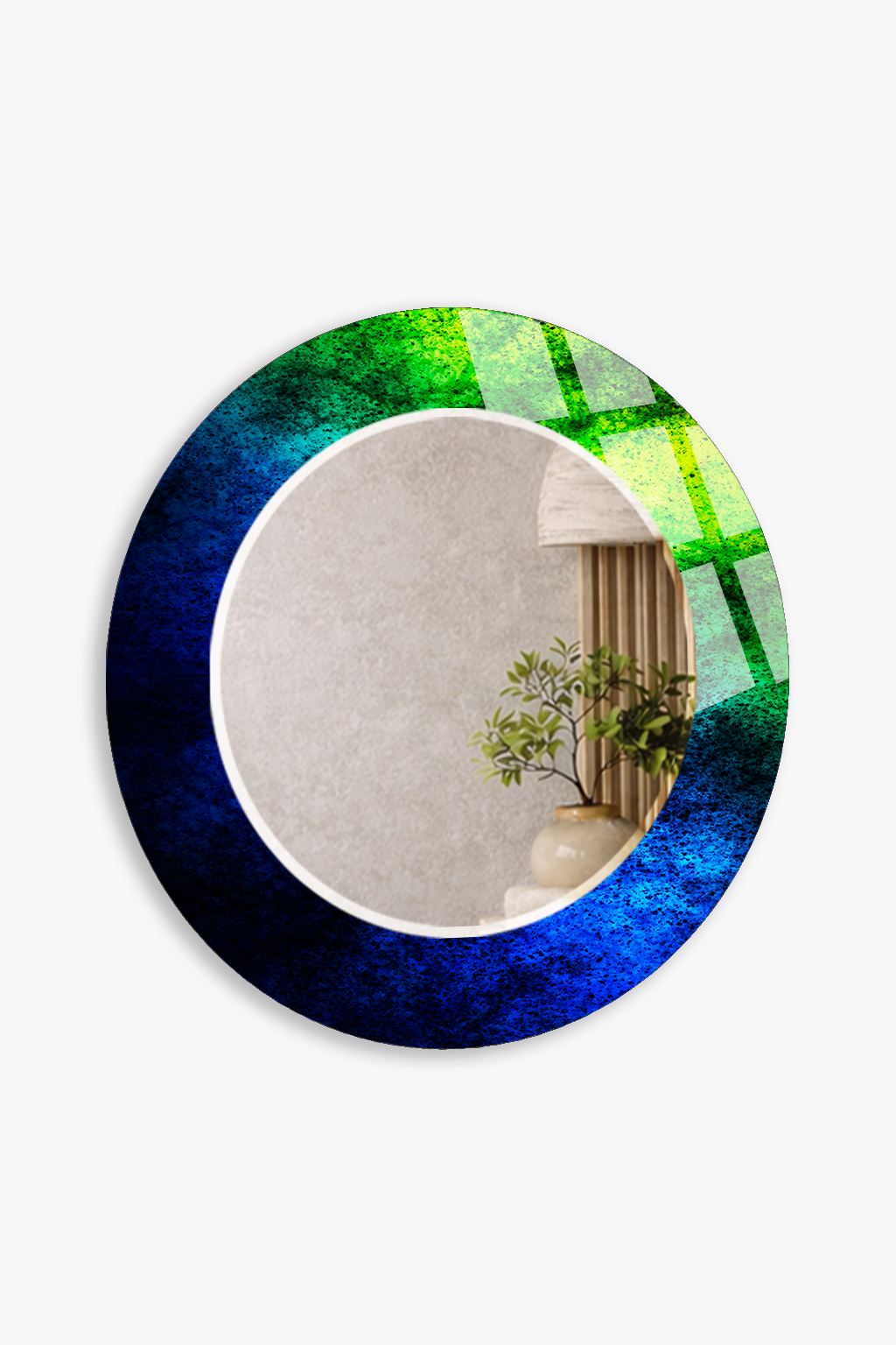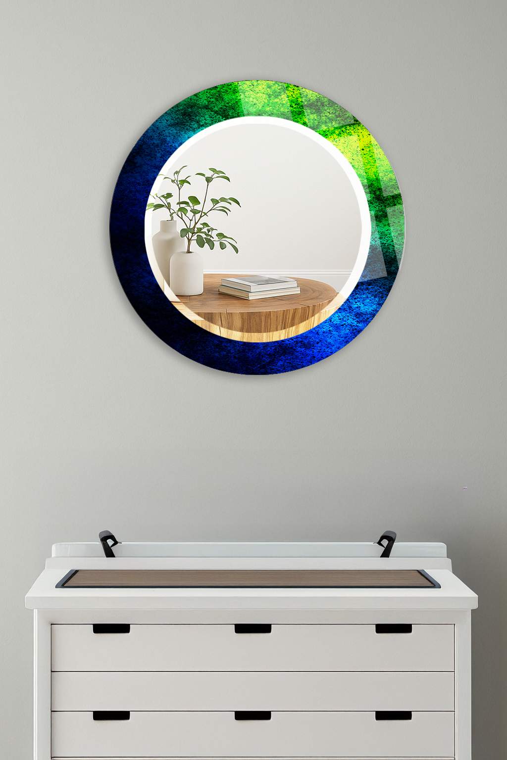 HEM TABLO HEM AYNA MAVİ YEŞİL GRANİT DOKULU CAM DUVAR AYNASI EV DEKORU