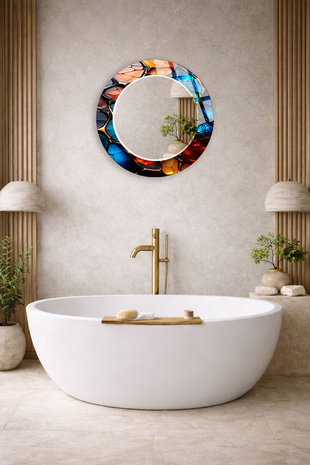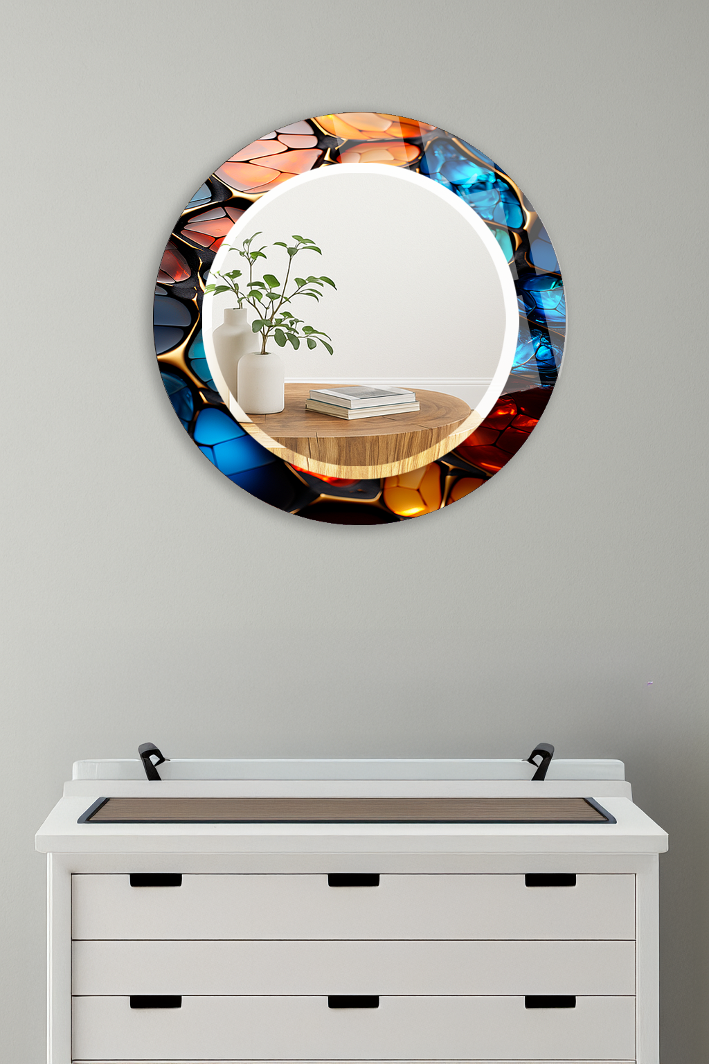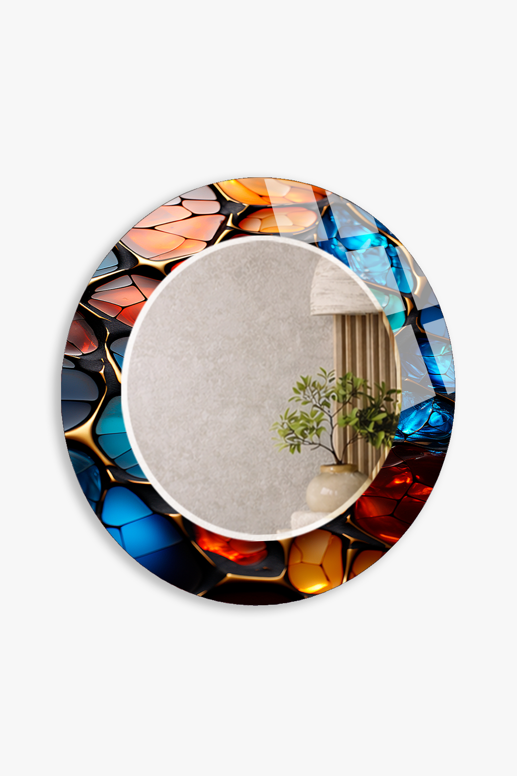 HEM TABLO HEM AYNA MODERN RENKLİ MOZAİK DOKULU CAM DUVAR AYNASI EV DEKORU