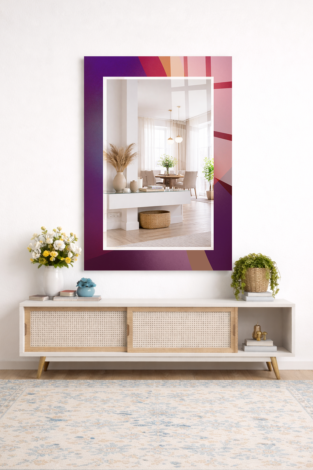 HEM TABLO HEM AYNA MOR GEOMETRİK MODERN DESEN CAM DUVAR AYNASI EV DEKORU