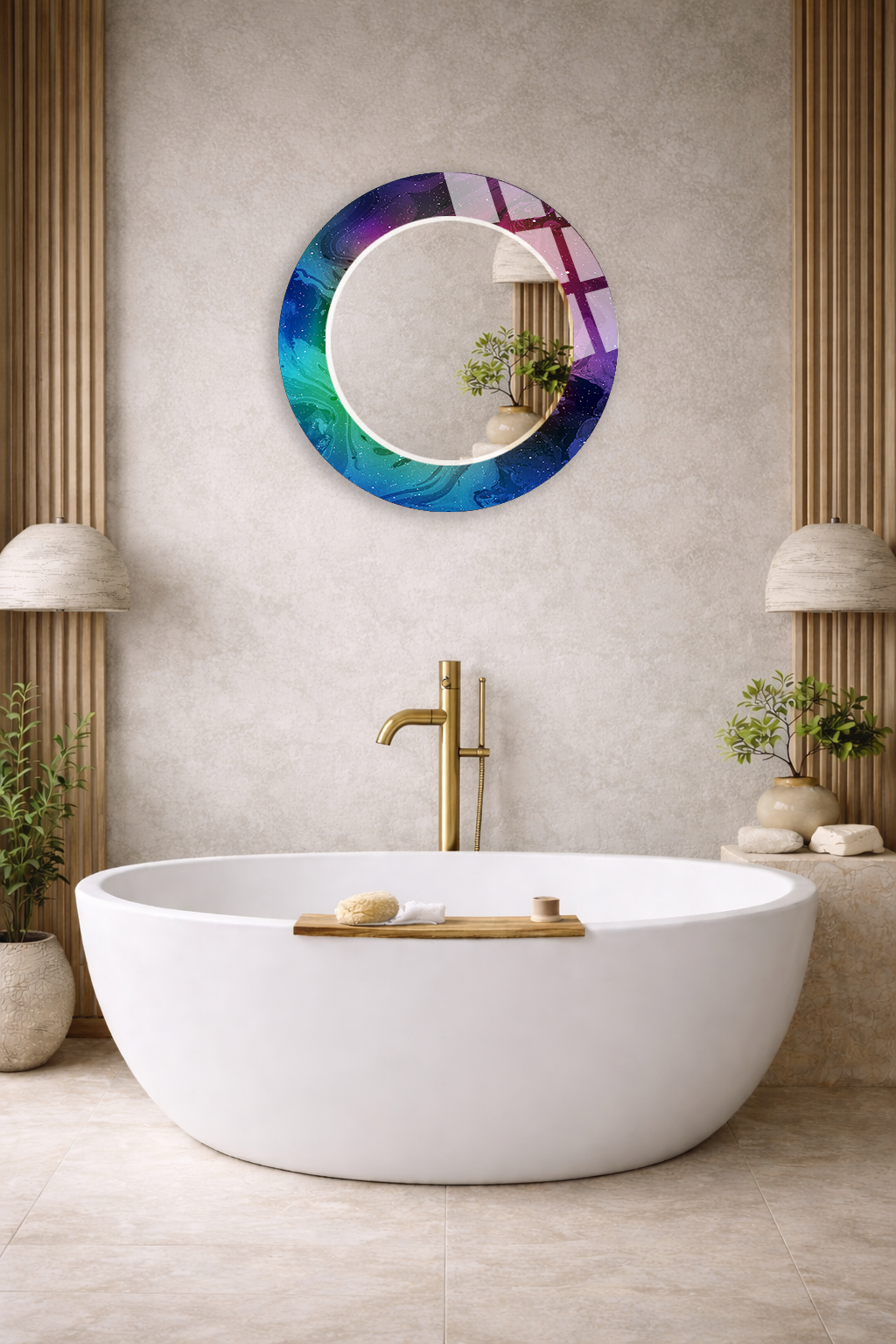 Hem dekoratif bir duvar objesi hem de kullanışlı bir ayna olarak tasarlanan bu özel ürün, ev ve ofis dekorasyonuna modern ve ferah bir atmosfer katar.