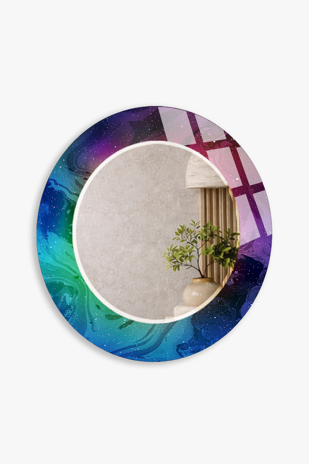 HEM TABLO HEM AYNA MOR MAVİ RENKLİ DESEN CAM DUVAR AYNASI EV DEKORU