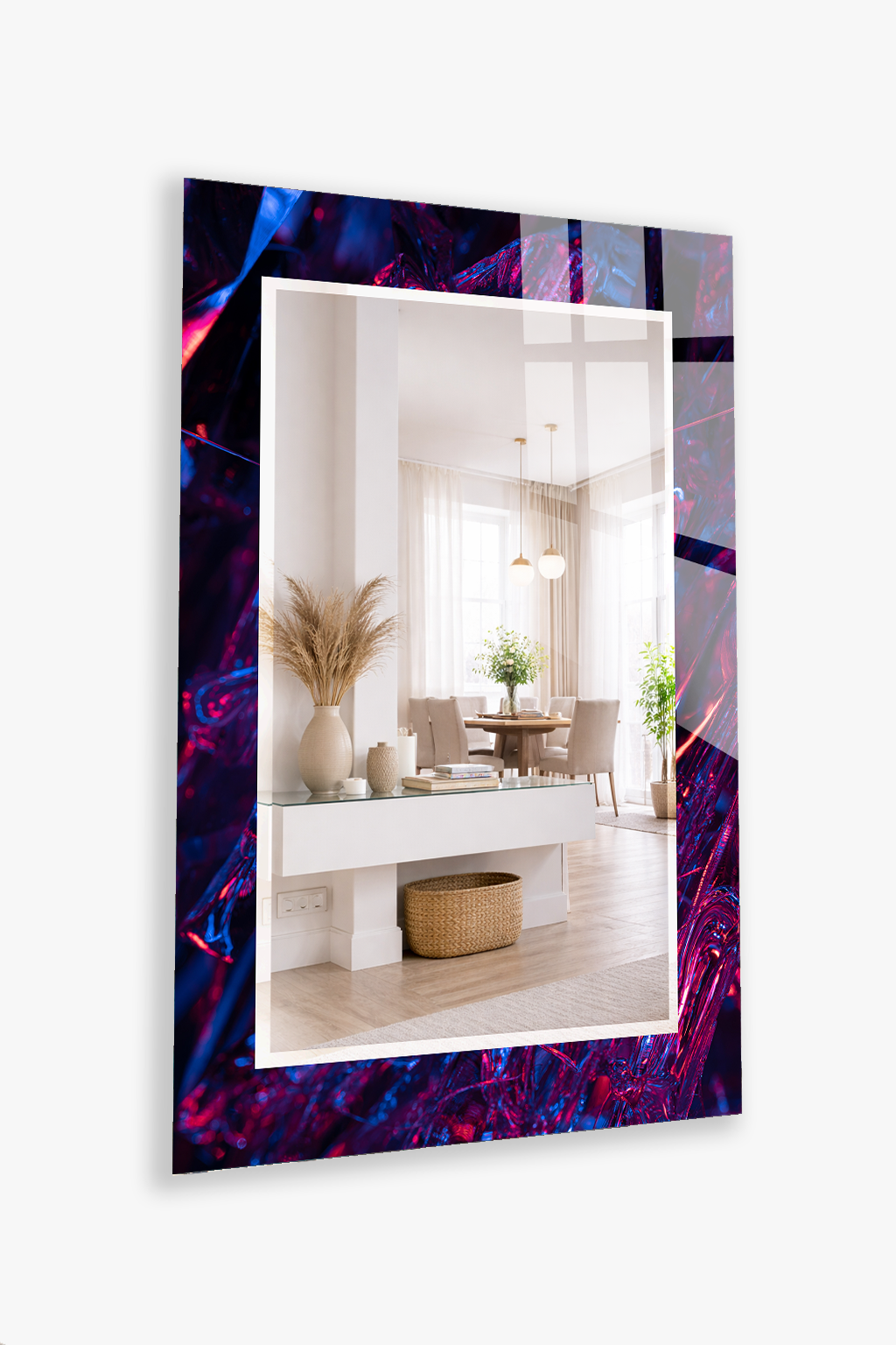 HEM TABLO HEM AYNA MOR NEON SOYUT AKIŞKAN SANAT CAM DUVAR AYNASI EV DEKORU