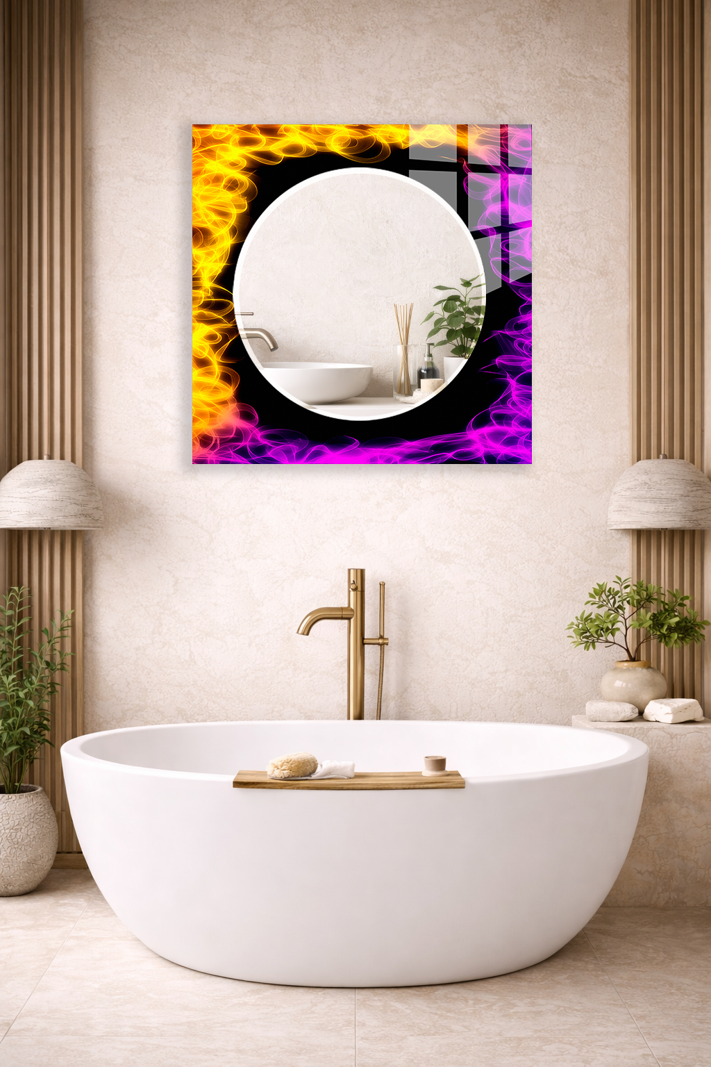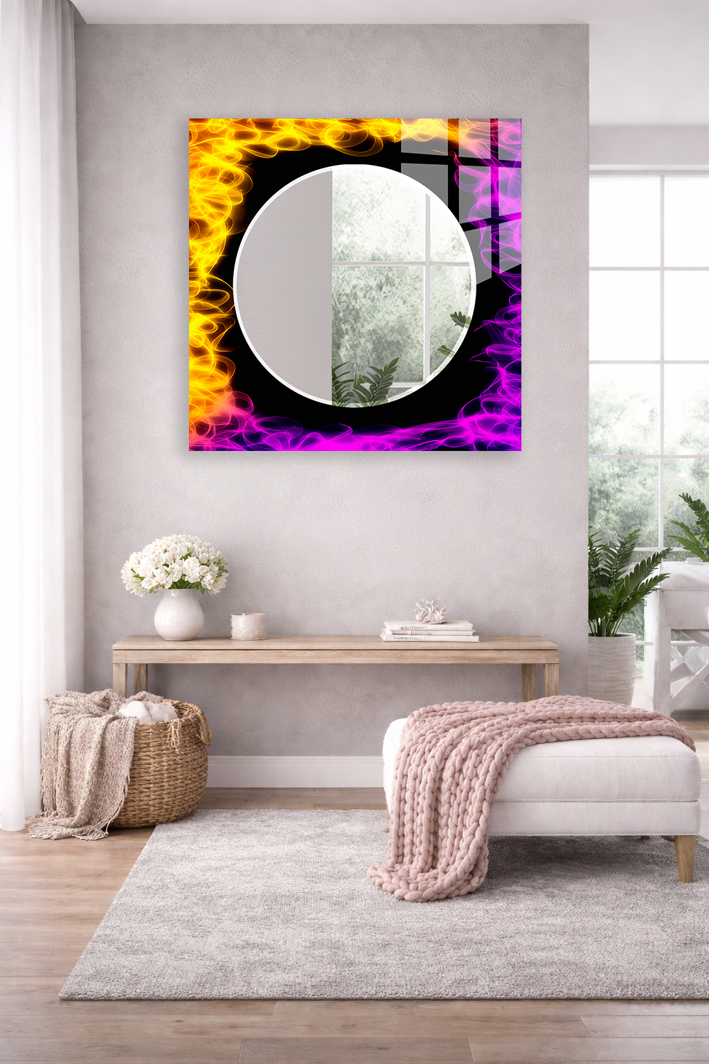 HEM TABLO HEM AYNA NEON ALEV IŞIK EFEKTLİ DESEN CAM DUVAR AYNASI EV DEKORU