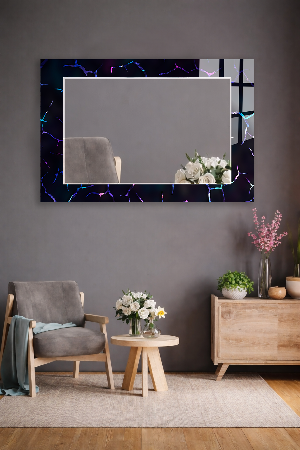 HEM TABLO HEM AYNA NEON ÇATLAK DESEN MODERN CAM DUVAR AYNASI EV DEKORU