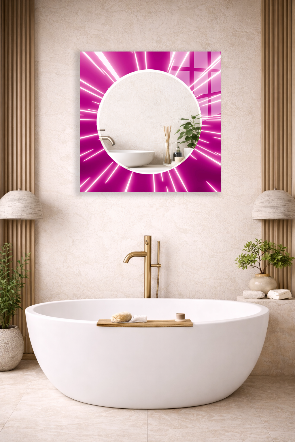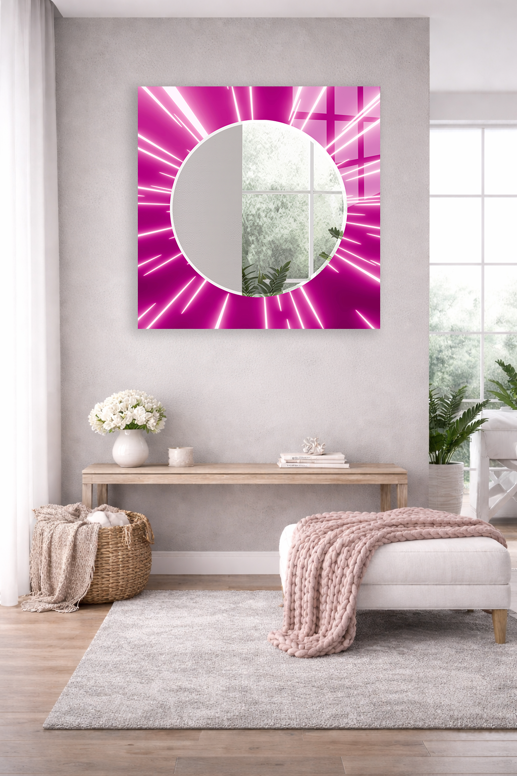 HEM TABLO HEM AYNA NEON IŞIK EFEKTLİ CAM DUVAR AYNASI EV DEKORU