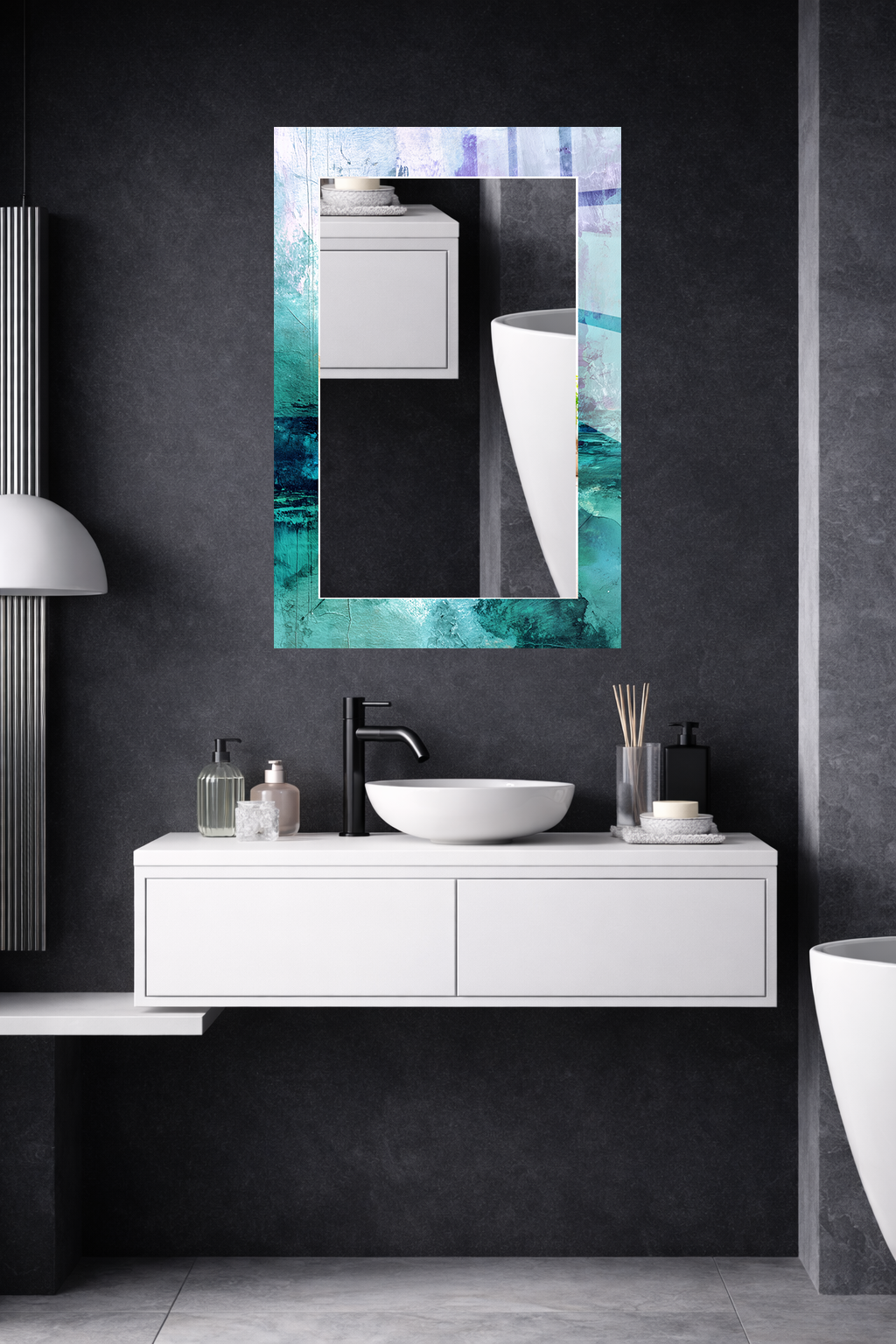 HEM TABLO HEM AYNA OKYANUS MAVİ DOKU SOYUT CAM DUVAR AYNASI EV DEKORU