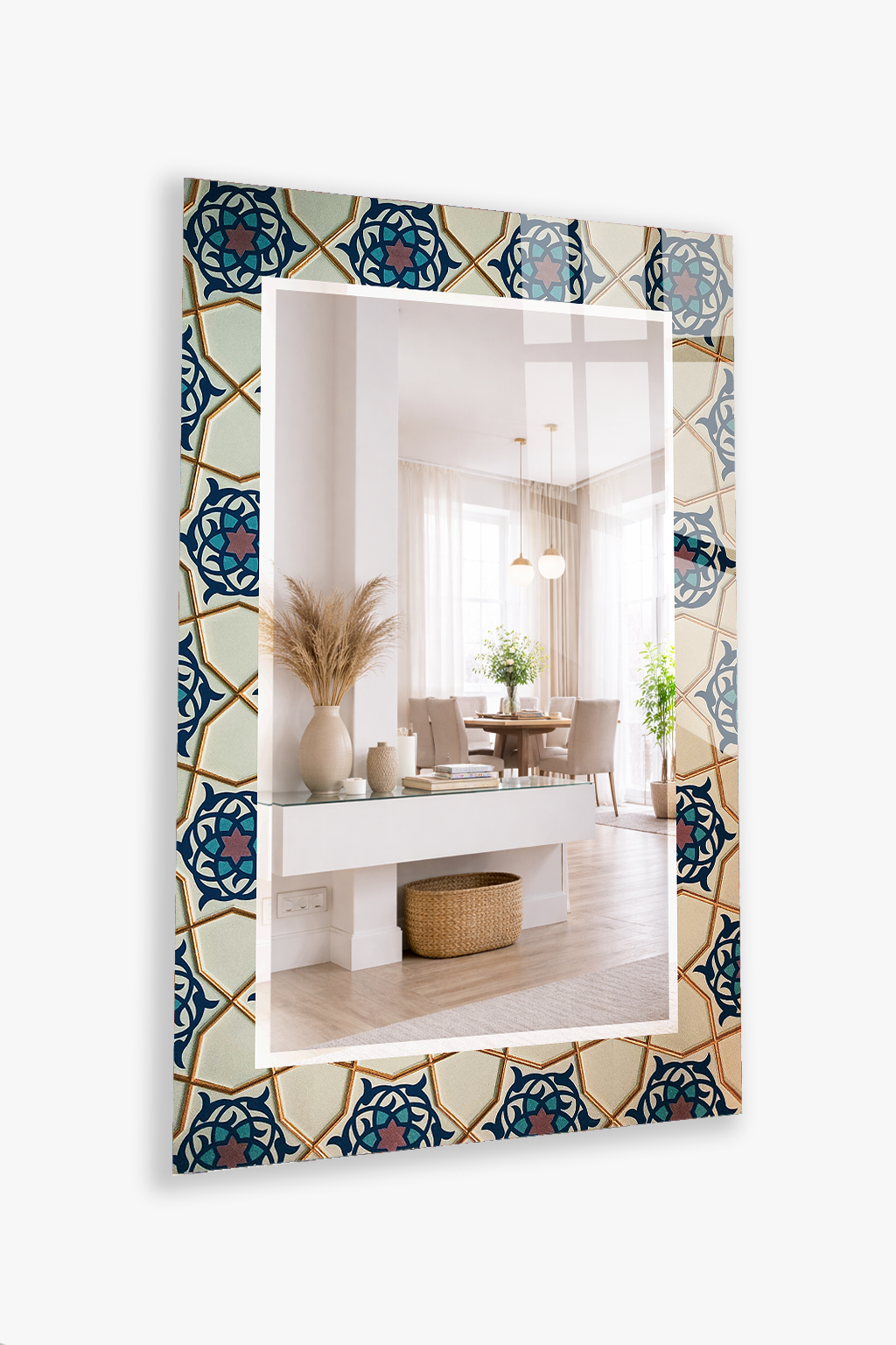 HEM TABLO HEM AYNA OSMANLI ÇİNİ MOTİFLİ CAM DUVAR AYNASI EV DEKORU