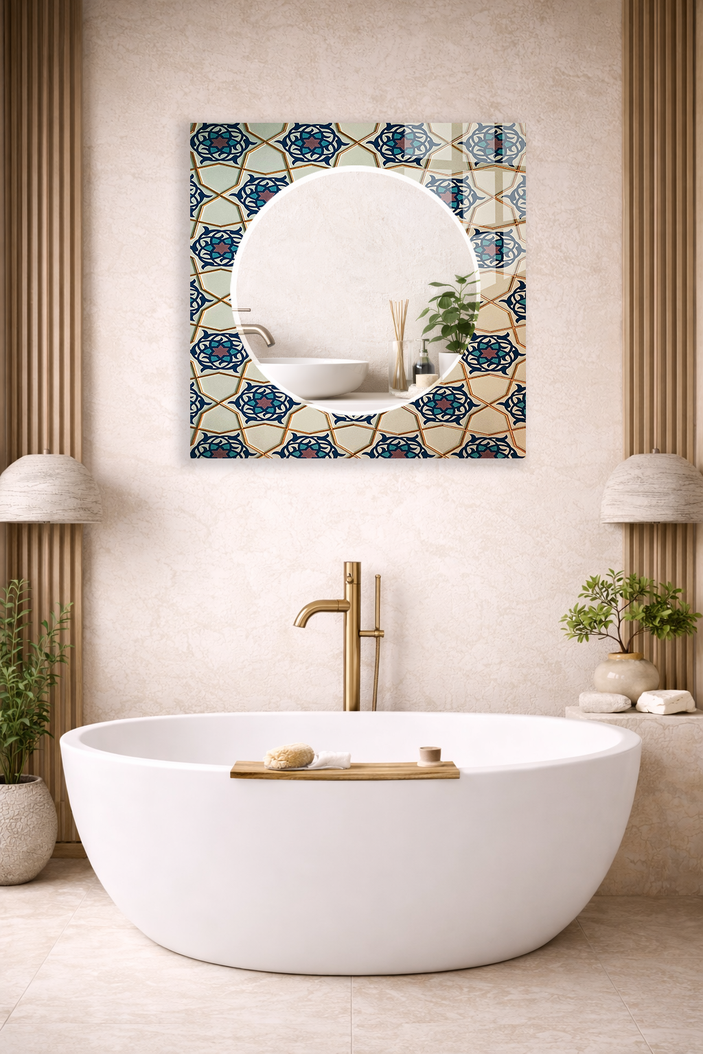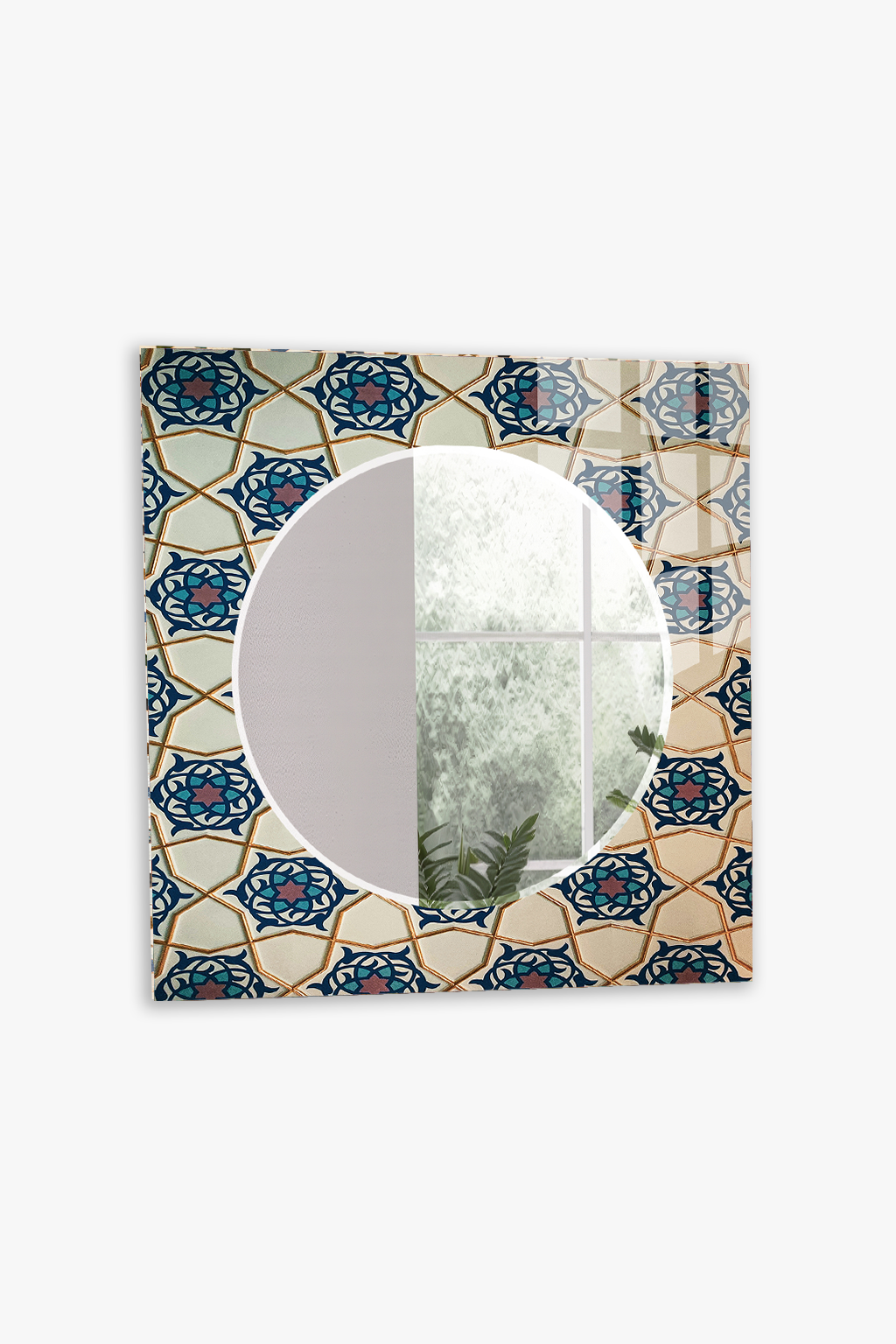 HEM TABLO HEM AYNA OSMANLI ÇİNİ MOTİFLİ KLASİK DESEN CAM DUVAR AYNASI EV DEKORU