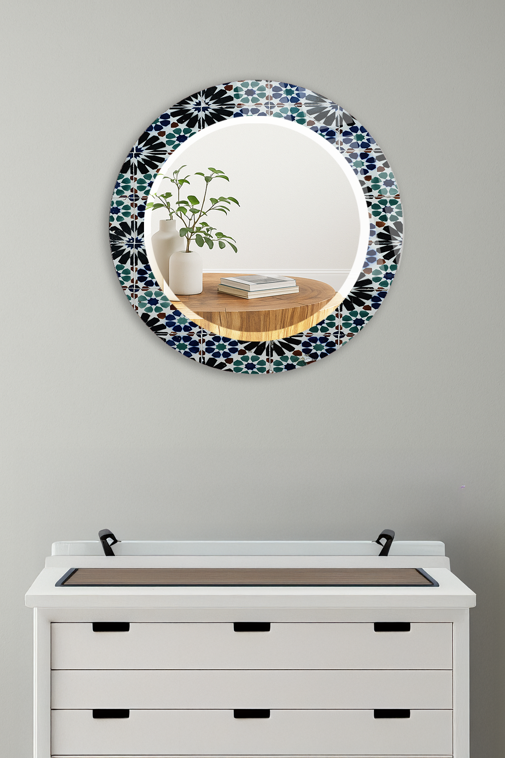 Dekoratif duvar aynası, tablo estetiği ile aynanın işlevselliğini bir araya getirerek yaşam alanlarına şıklık kazandırır.