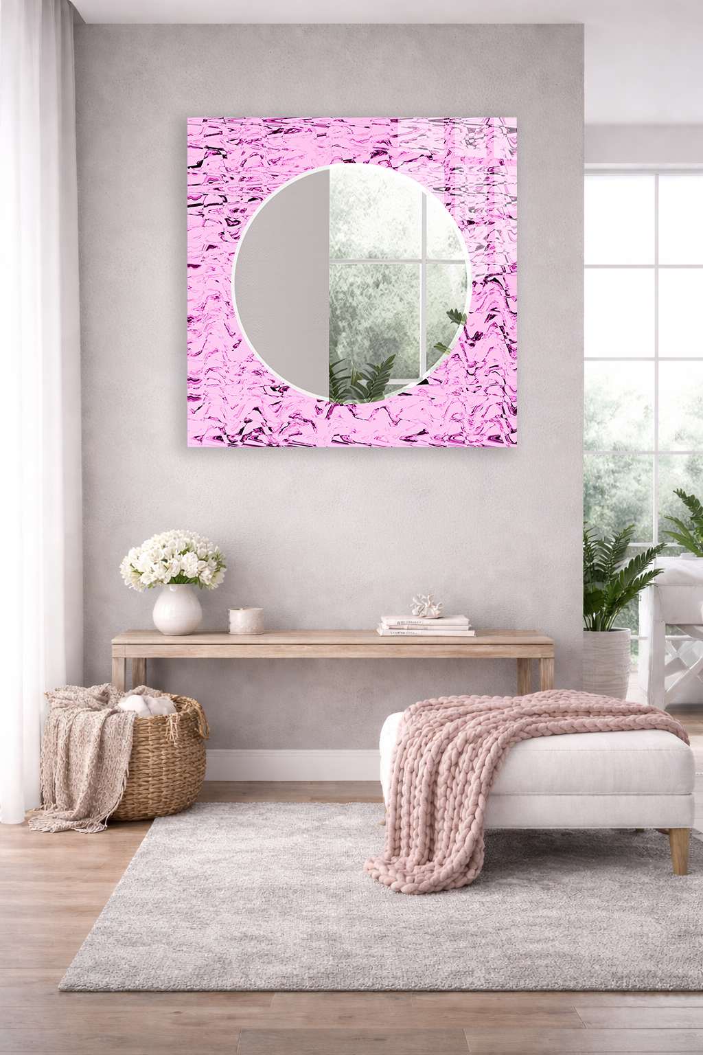 Hem dekoratif bir duvar objesi hem de kullanışlı bir ayna olarak tasarlanan bu özel ürün, ev ve ofis dekorasyonuna modern ve ferah bir atmosfer katar.